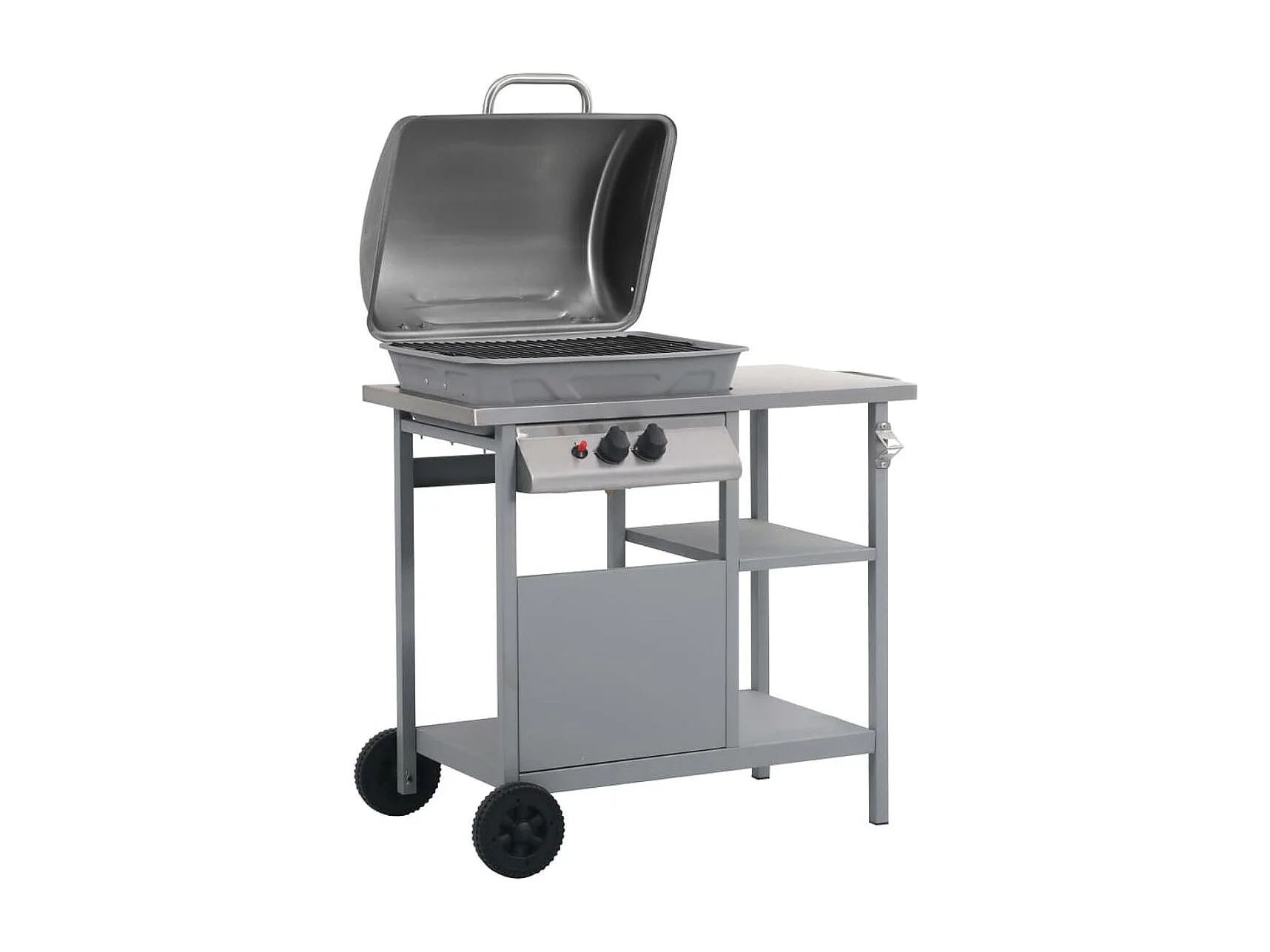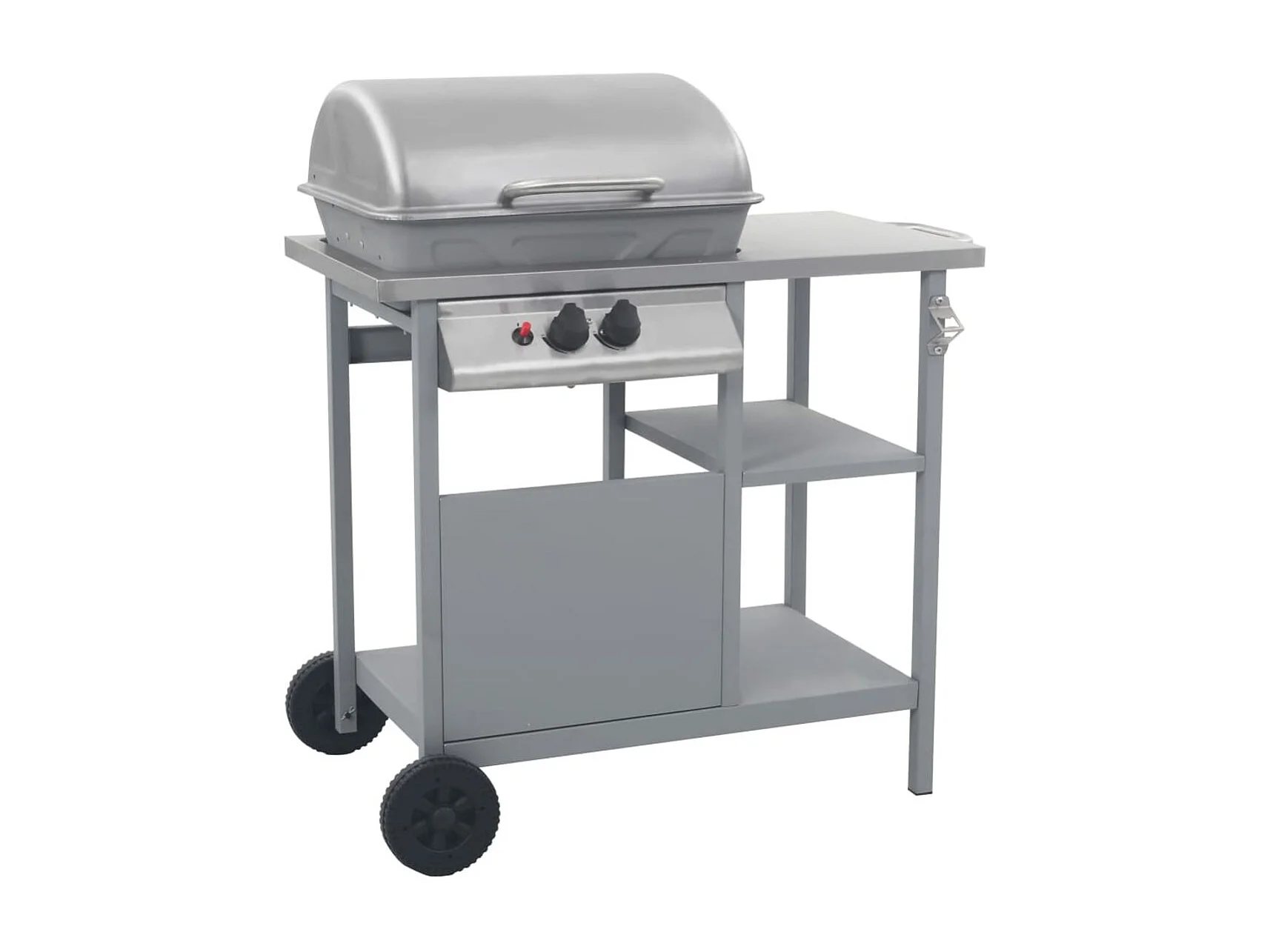 Barbacoa de gas VidaXL 5500W 2 fogones con tapa y 3 estantes plata