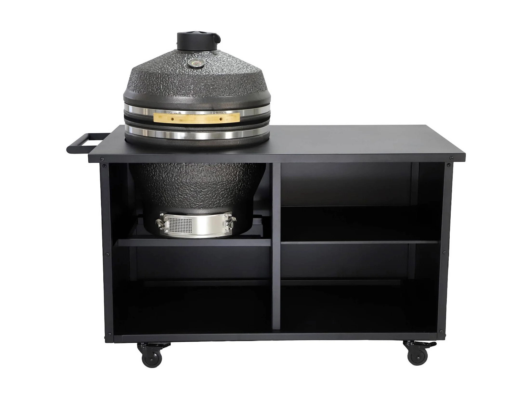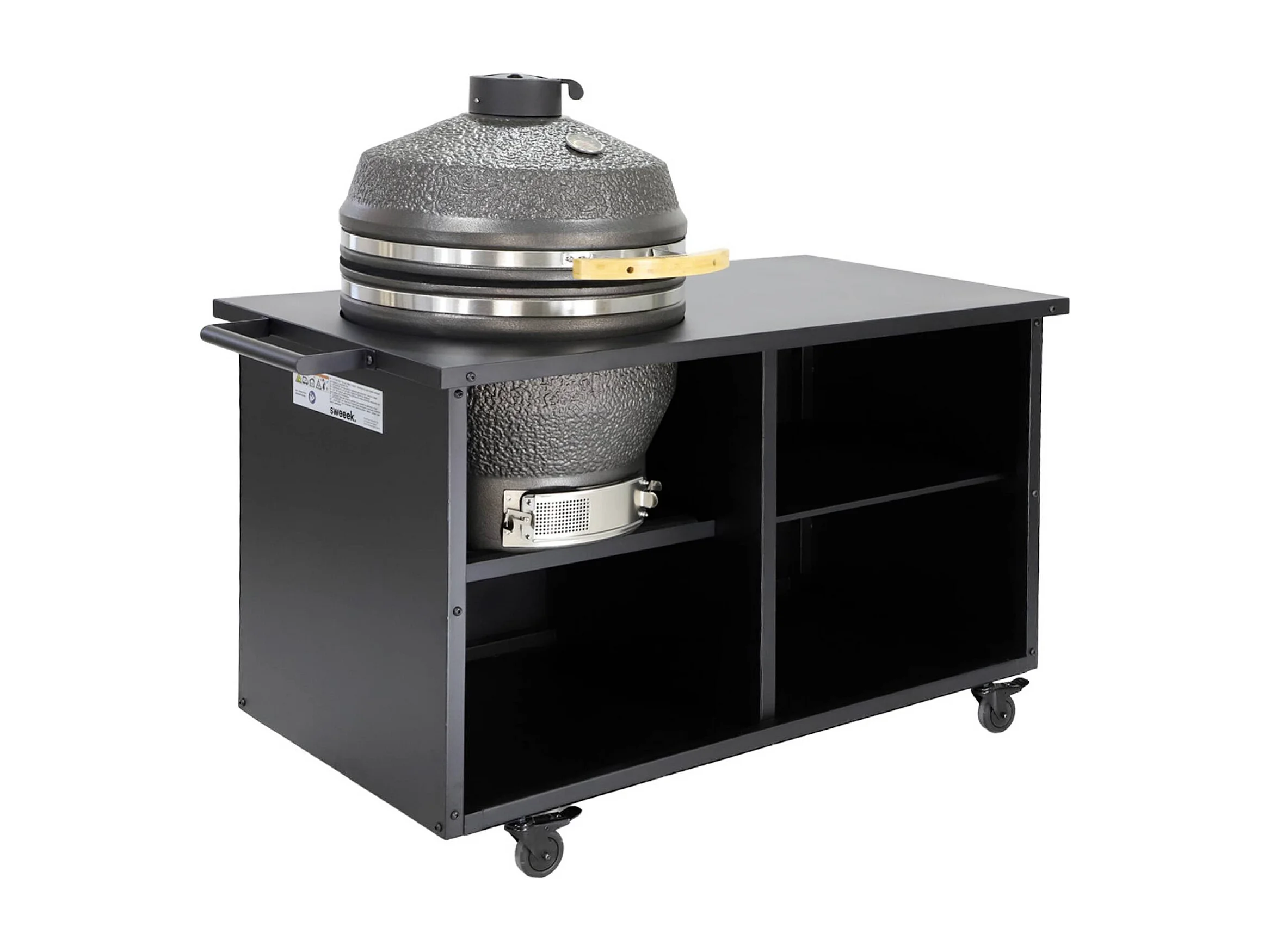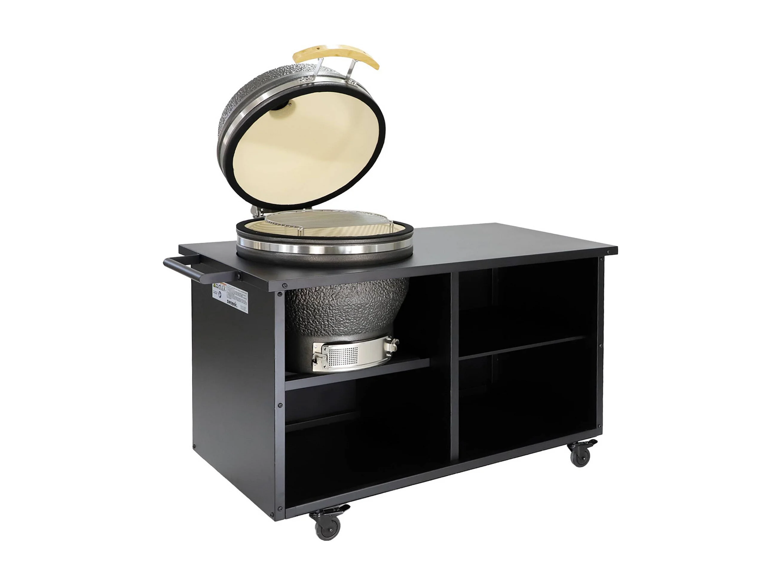 Barbacoa kamado de carbón, ahumador con mesa auxiliar y funda negro