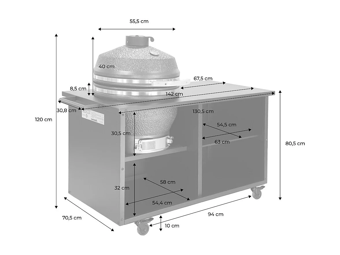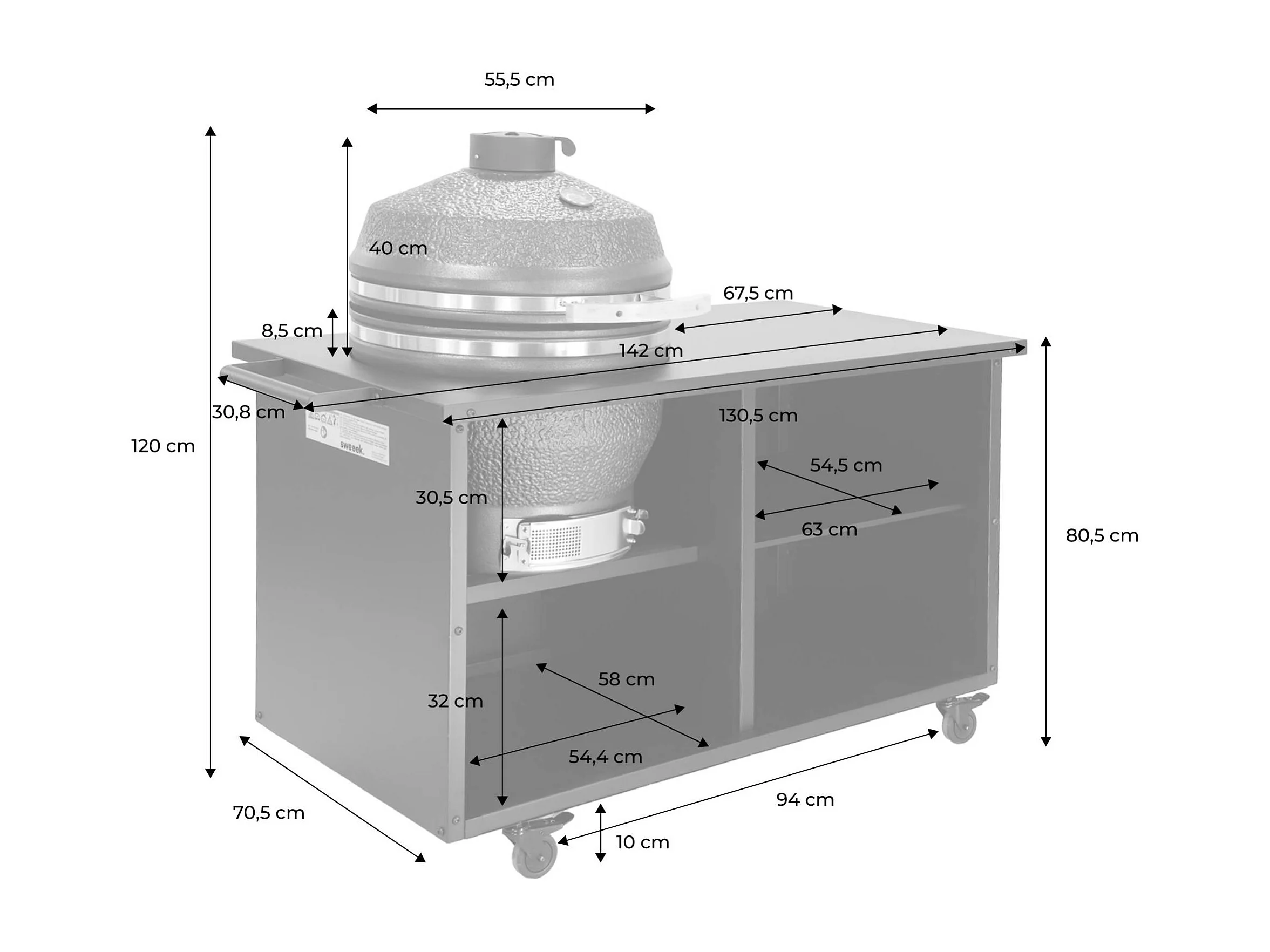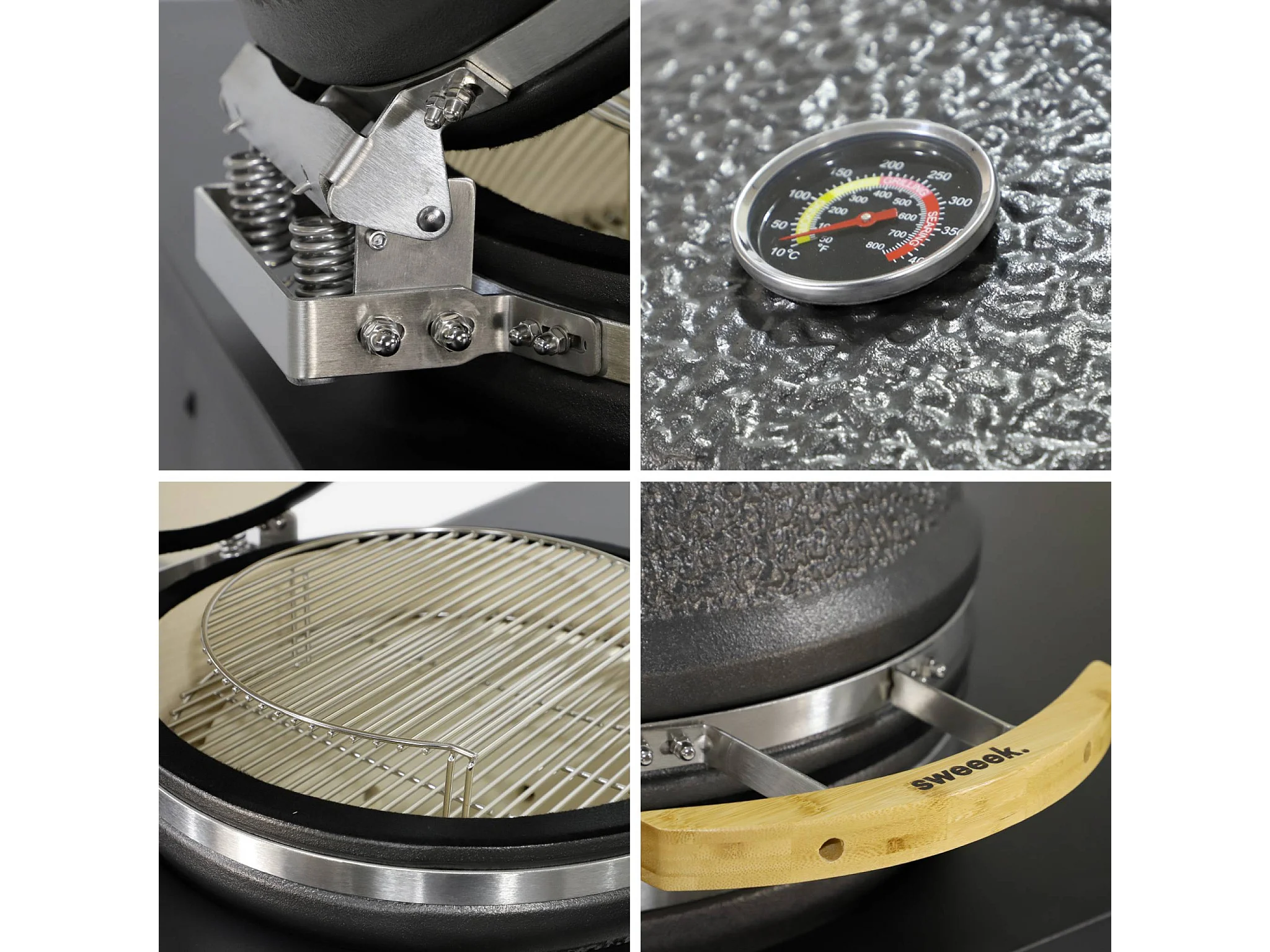 Barbacoa kamado de carbón, ahumador con mesa auxiliar y funda negro