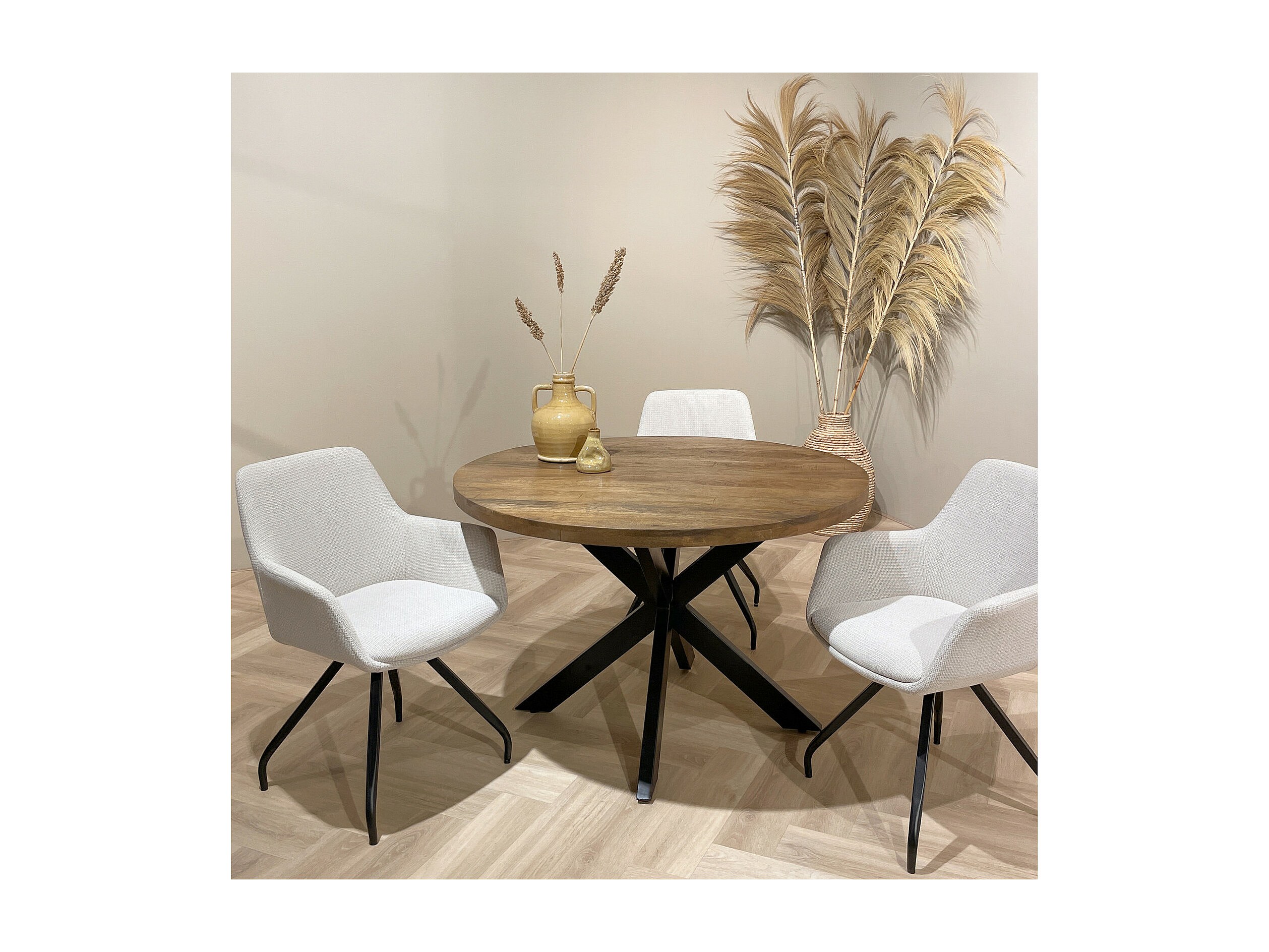 Ronde eettafel BOLTON Ø120 cm – Natuurlijke elegantie en gebruiksvriendelijk formaat-Color Marrón