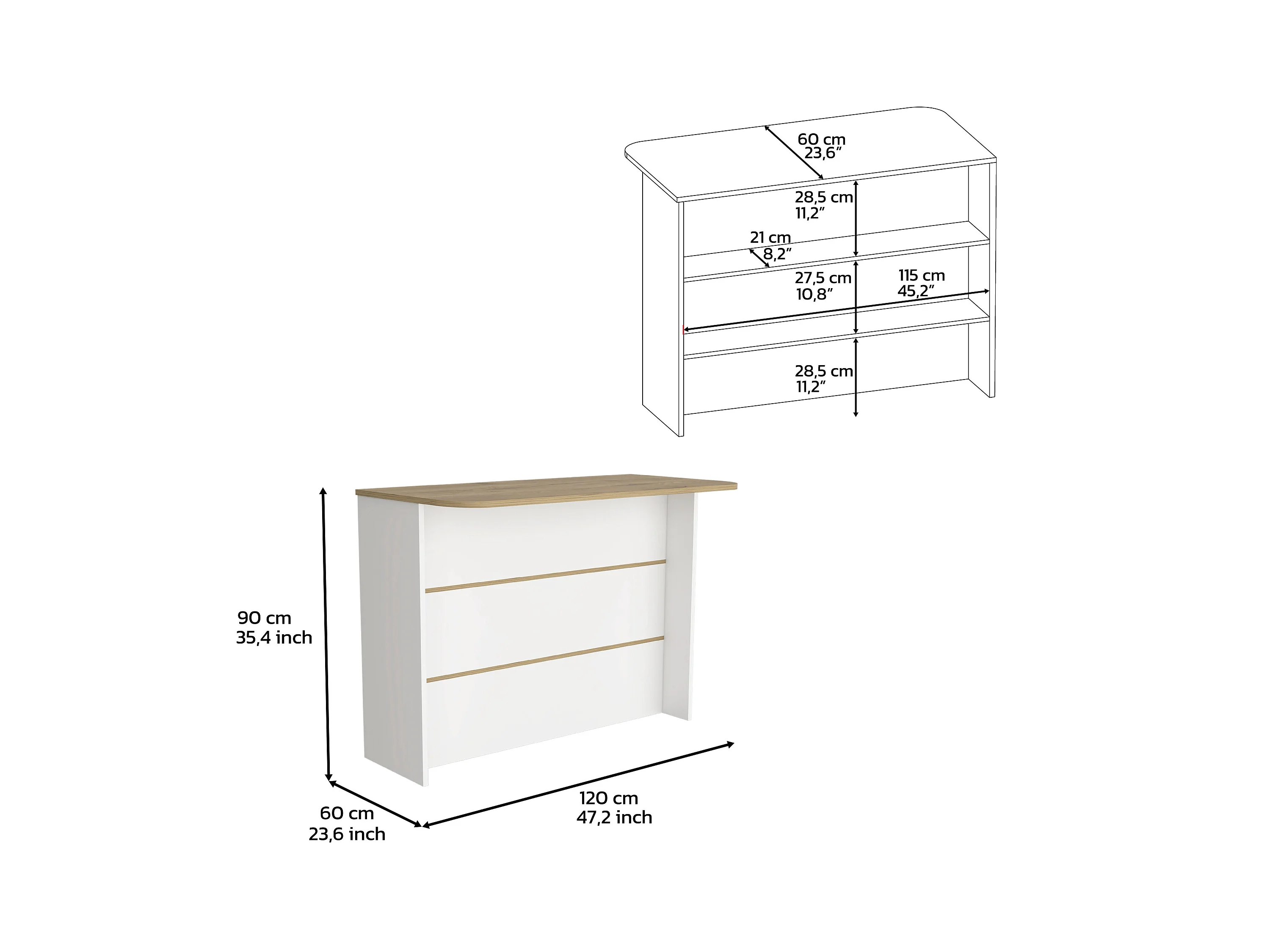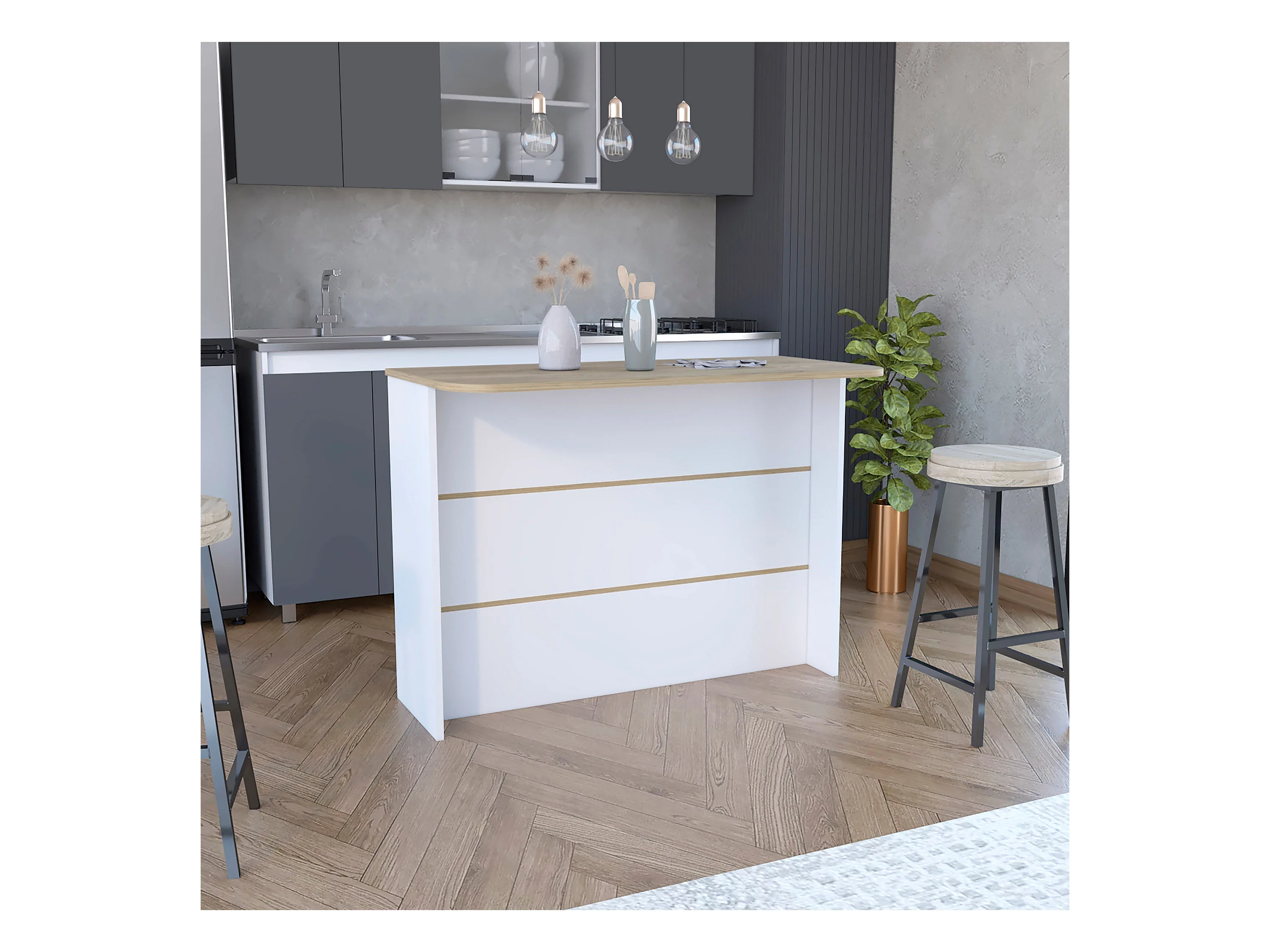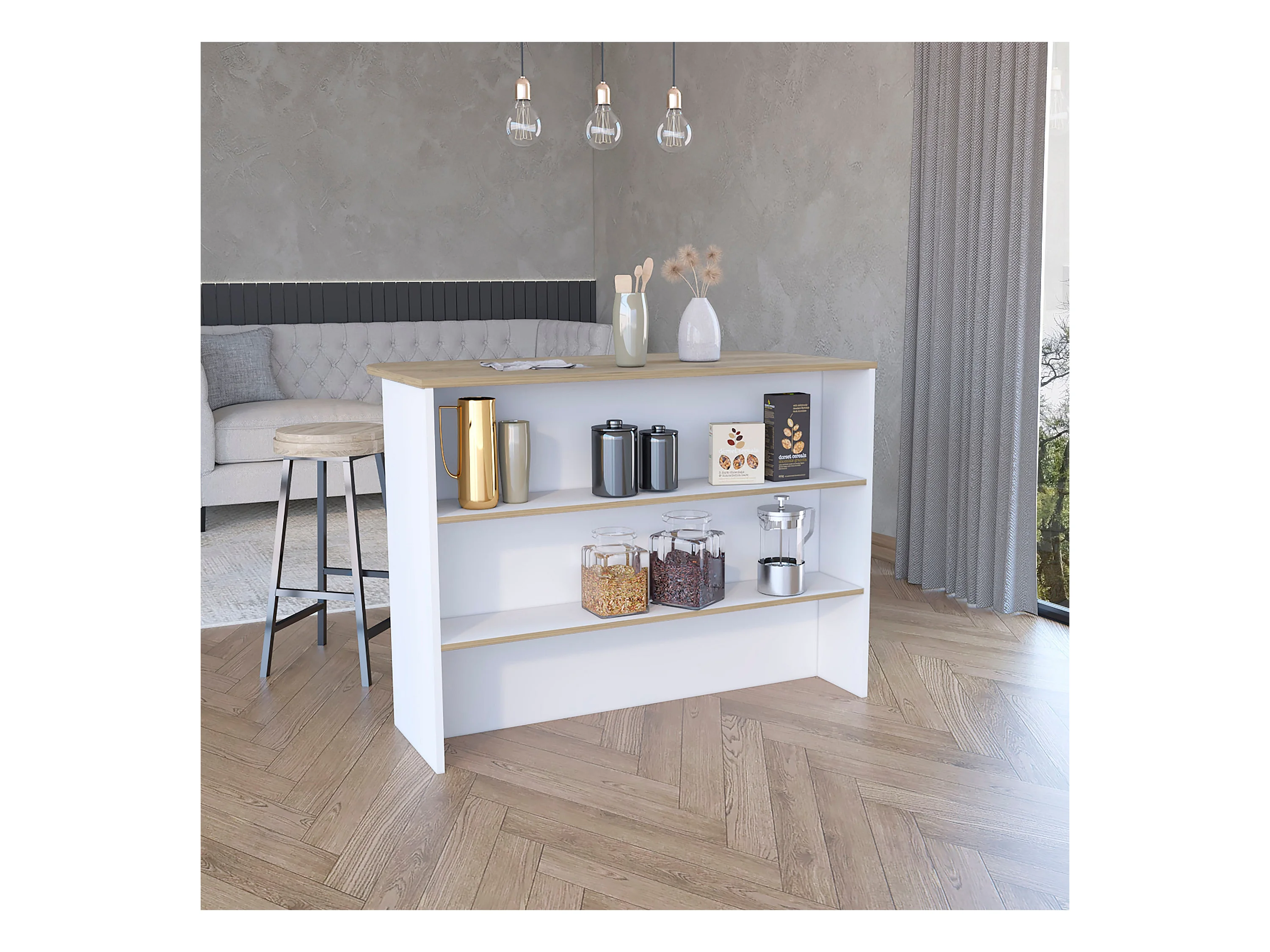 Barra de Cocina Llanes, con dos estantes 90 CM A X 120 CM An X 60 CM P. Blanco / Macadamia