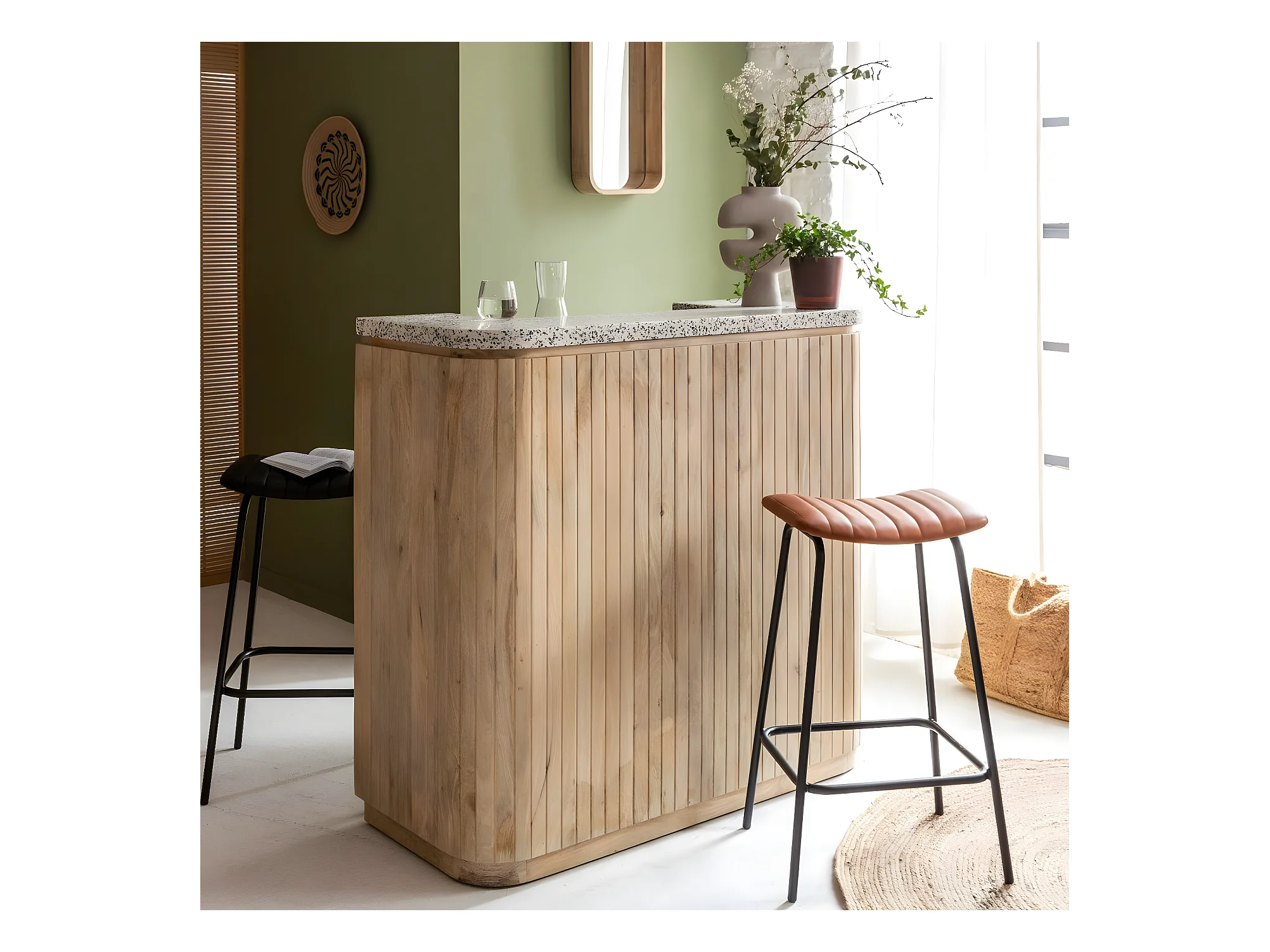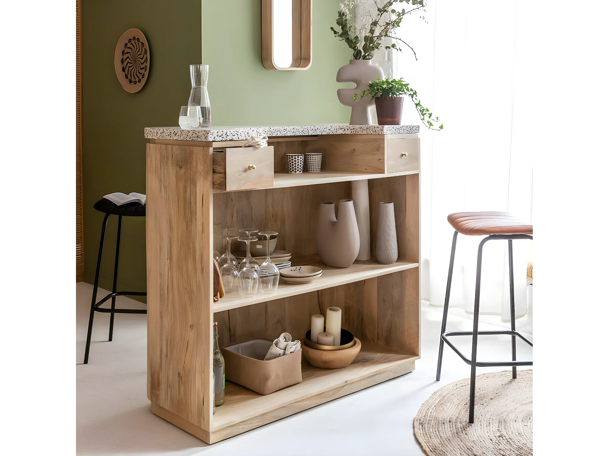 Barra de madera de mango y terrazo Lou con almacenamiento - Estilo contemporáneo - Envío gratis