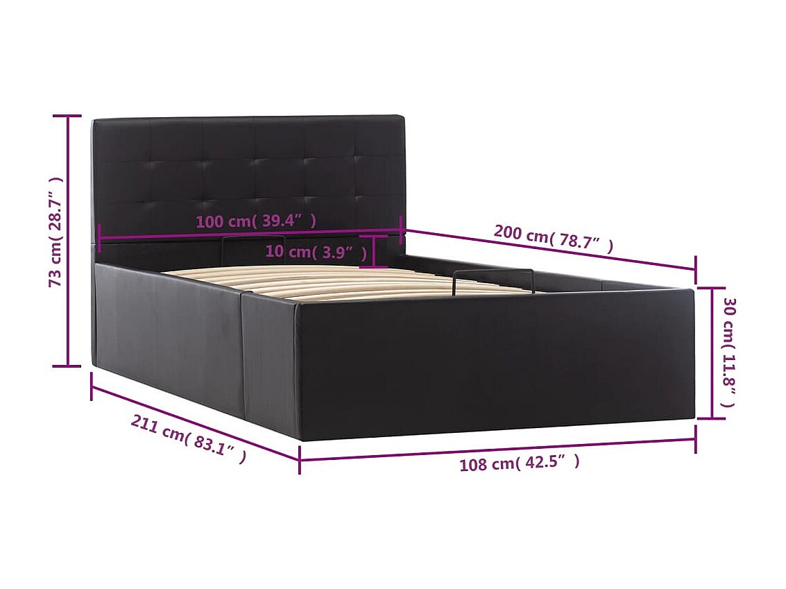 Base de cama con canapé hidráulico Piel sintética negra 100x200 cm