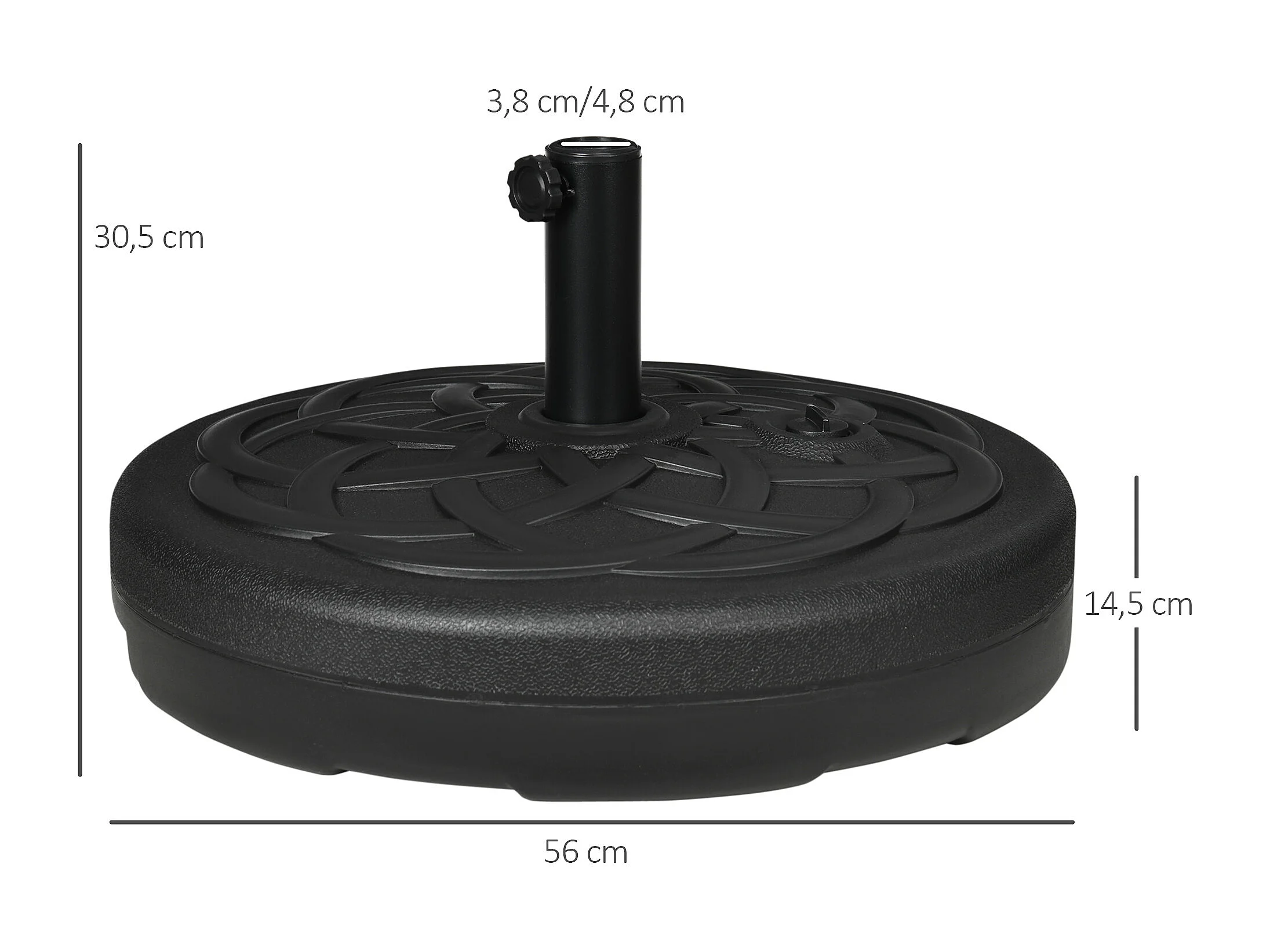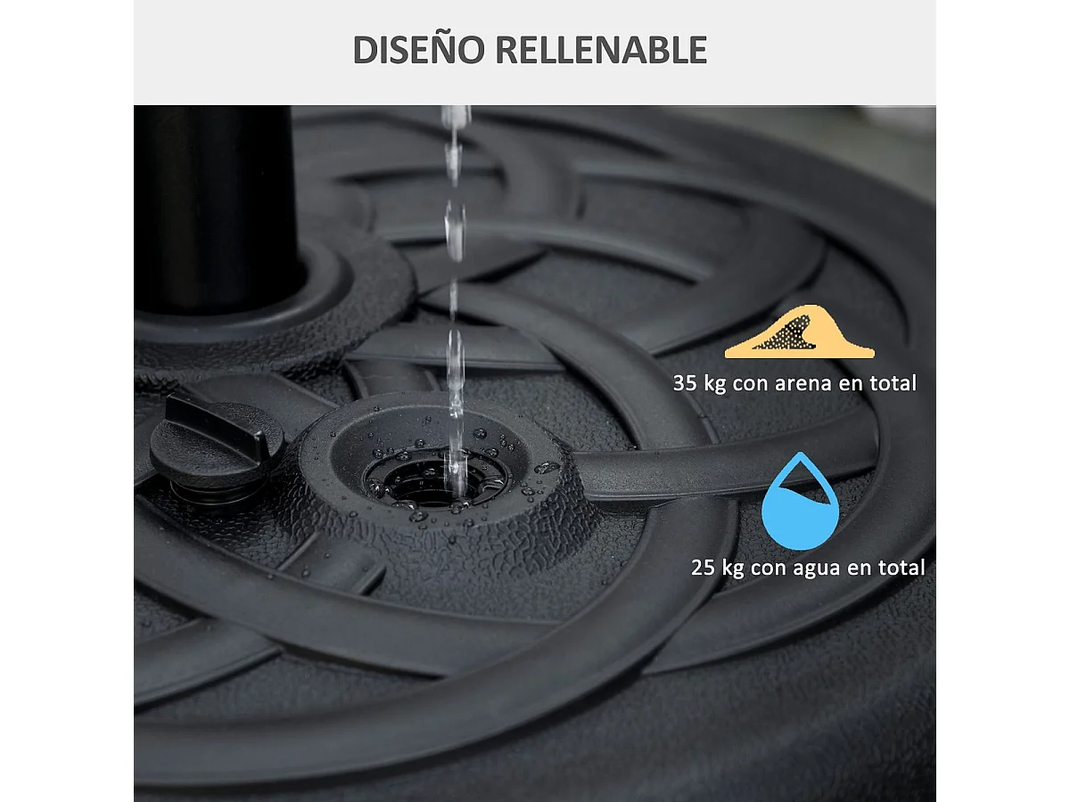 Base de sombrilla pesada para sombrilla de diámetro 38 y 48 mm base de sombrilla exterior de HDPE rellena con 39 kg de arena/23 litros de agua 56 x 30 cm 20_0009075
