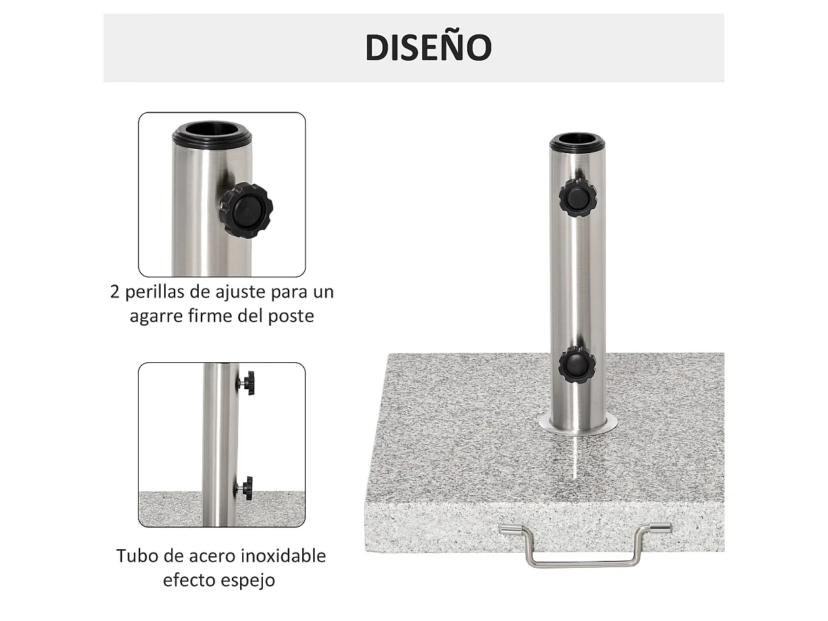 Base para parasol granito pulido 30 kg con ruedas + mango 38 a 48 mm gris 2202026/2