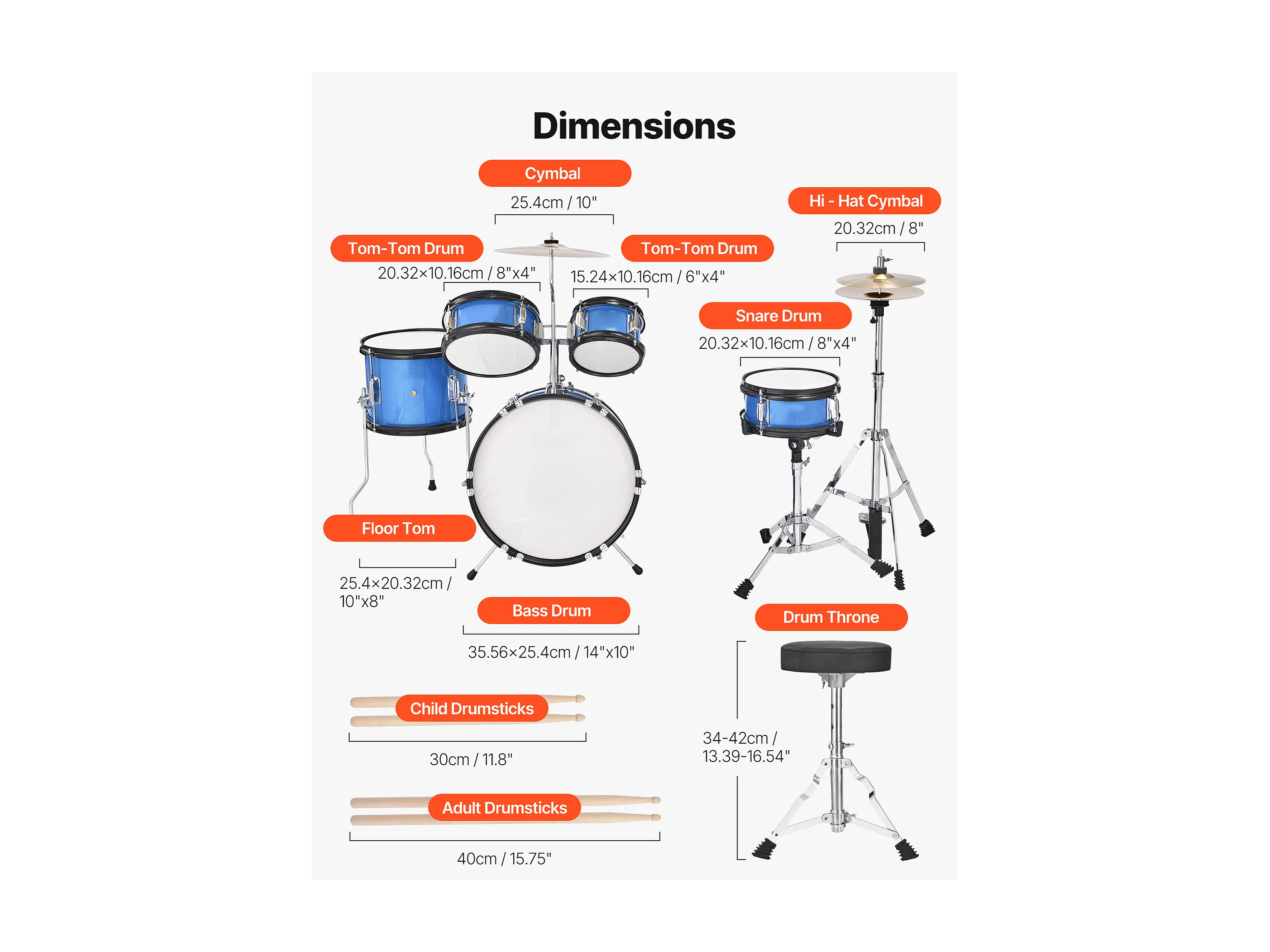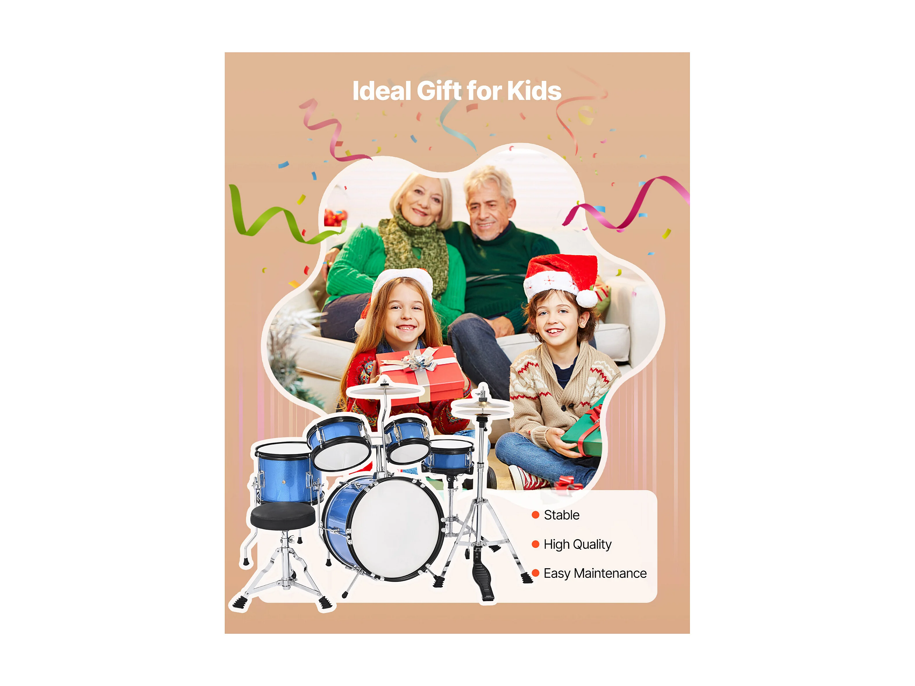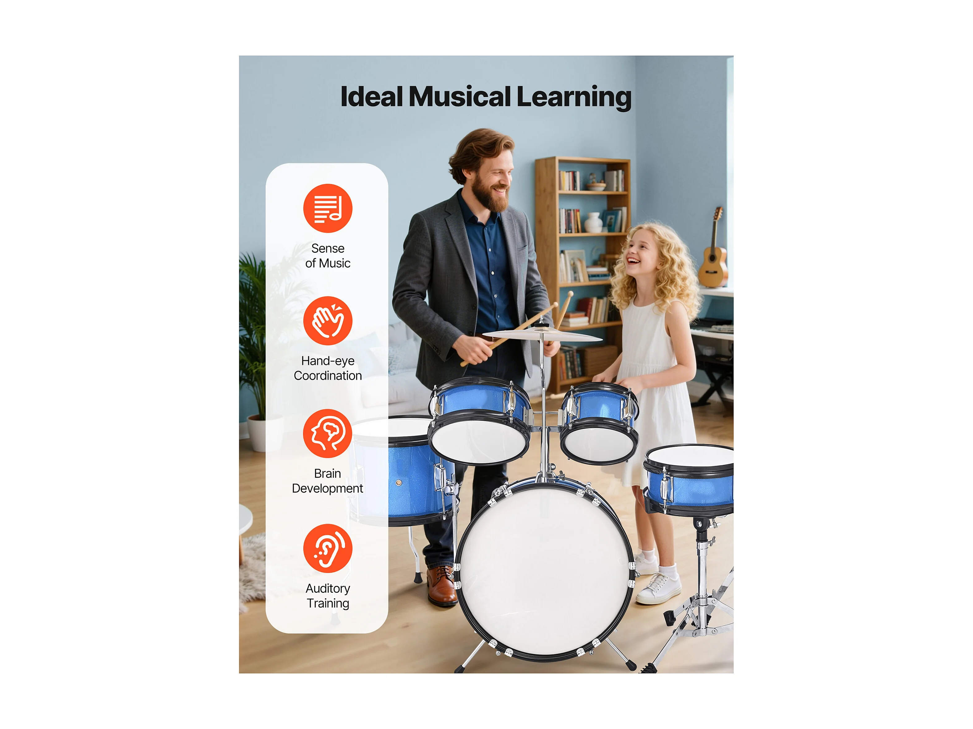 Batería para Niños SucceBuy, 5 Piezas, Batería para Principiantes, Bombo de 35,56 cm con Tom-tom, Caja de 20,32 cm, Tom Bajo de 25,4 cm, Asiento, Baquetas, Azul