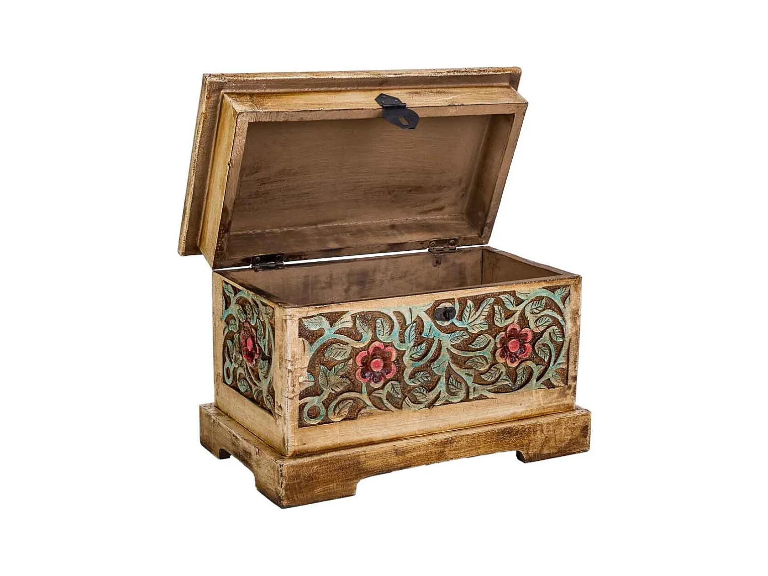 Caja joyero de madera pintado artesanal marrón 25x18x10h cm