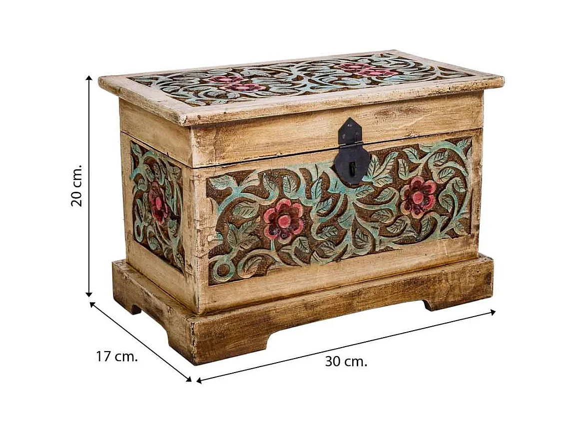 Baúl de madera artesanal marrón 30x17x20