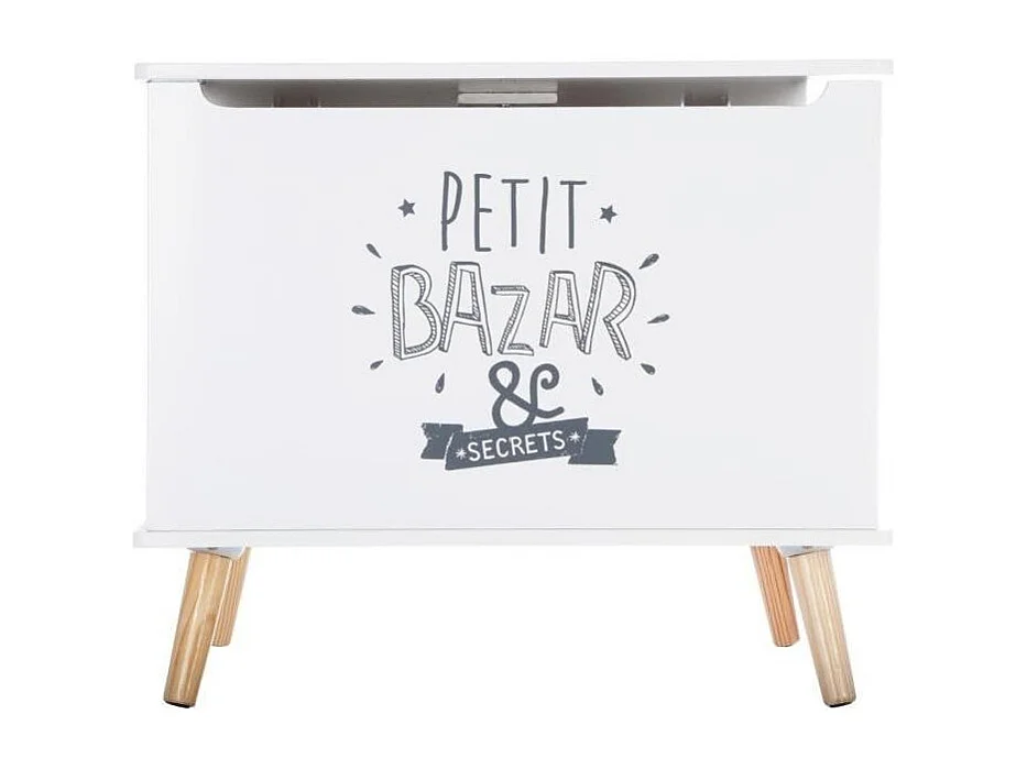 Baul Douceur Infantil Dormitorio, 58 cm, Melamina y Patas Madera Blanco