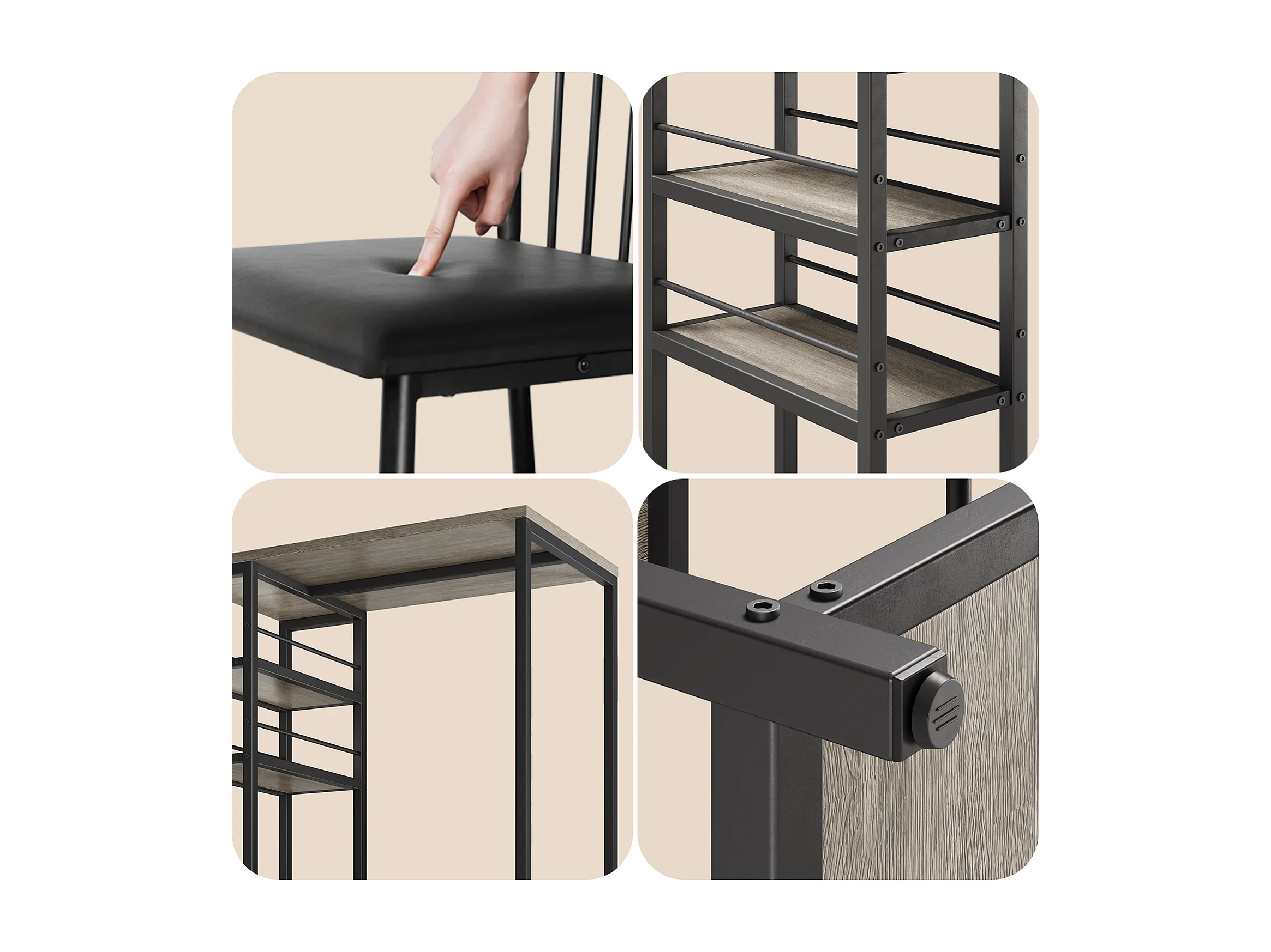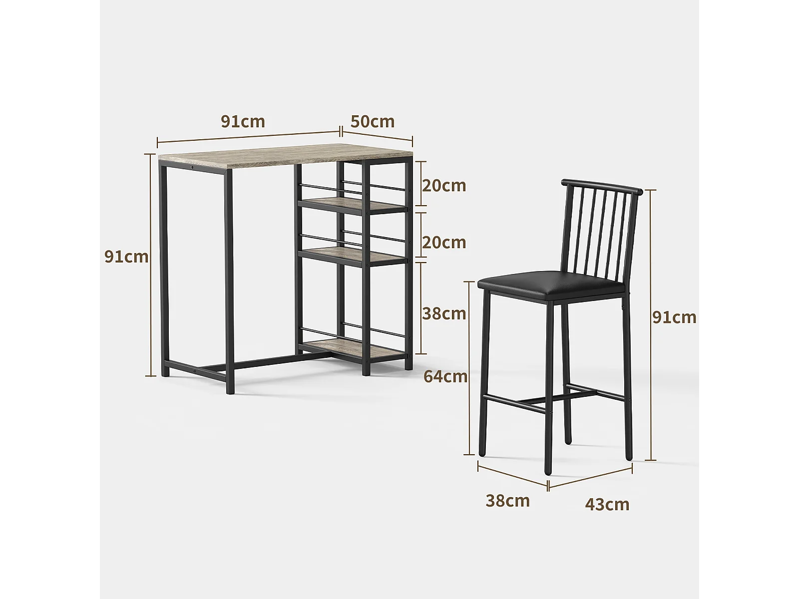 Set Mesa Alta de Bar y 2 taburetes con Respaldos Mesa de Comedor de Estilo Industrial ES L89cm x D45cm x H87cmOGT03-HG SoBuy ES