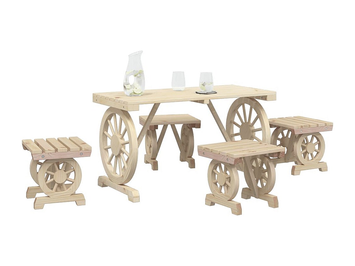 Adrien Juego de comedor de jardín 5 piezas madera maciza de pino