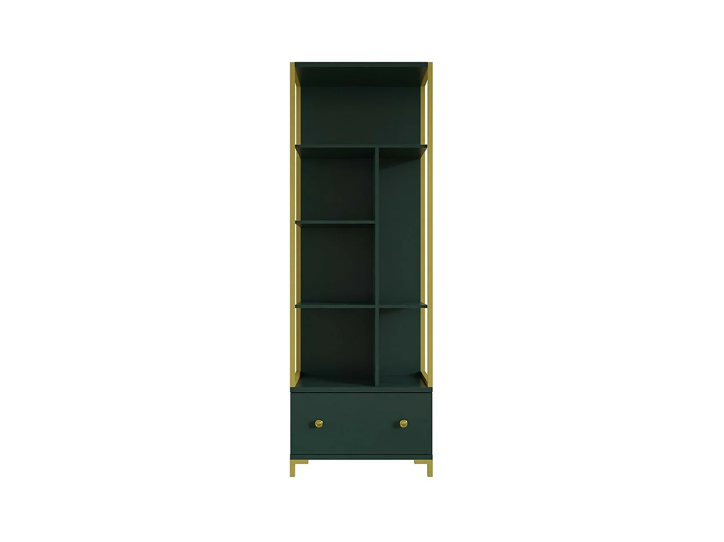 Biblioteca colección DOUGLAS color verde con numerosos almacenamientos y acabados dorados, 70 x 200 x 42 cm
