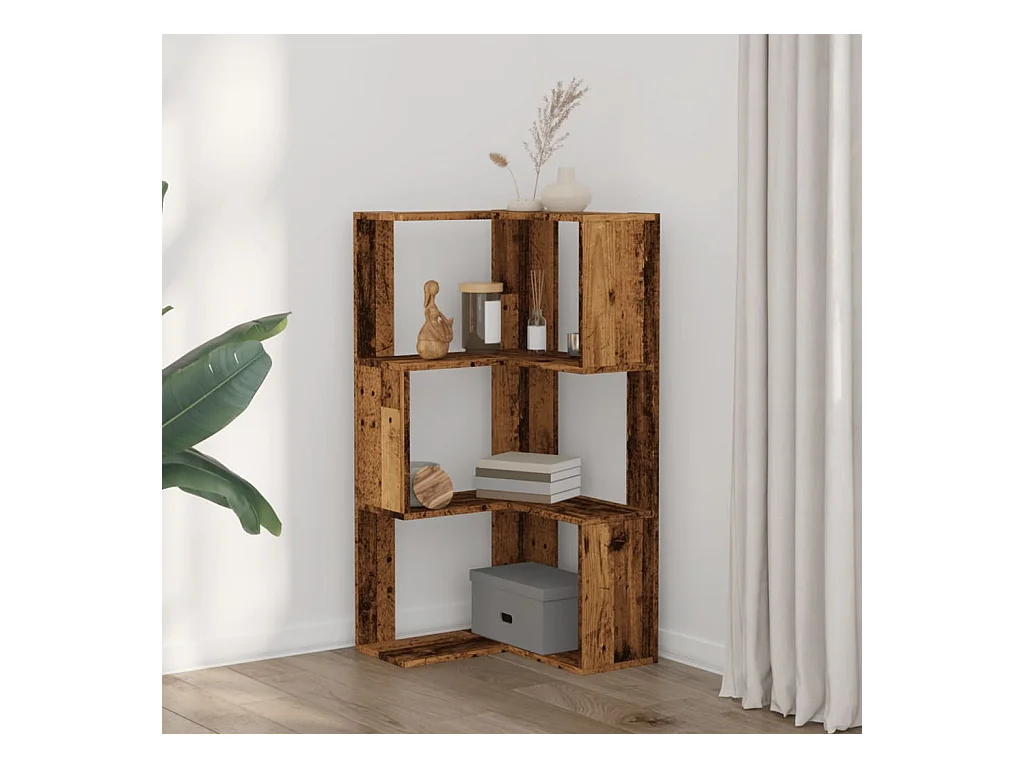 Biblioteca de esquina 3 niveles madera envejecida 50x50x102 cm ES719340