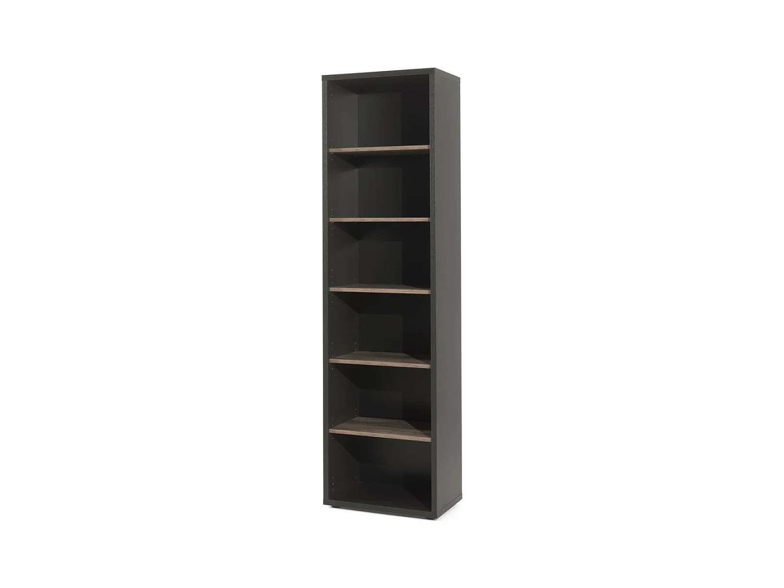 Biblioteca de Oficina con 5 estantes color roble envejecido y negro | Colección SOON | Meublorama