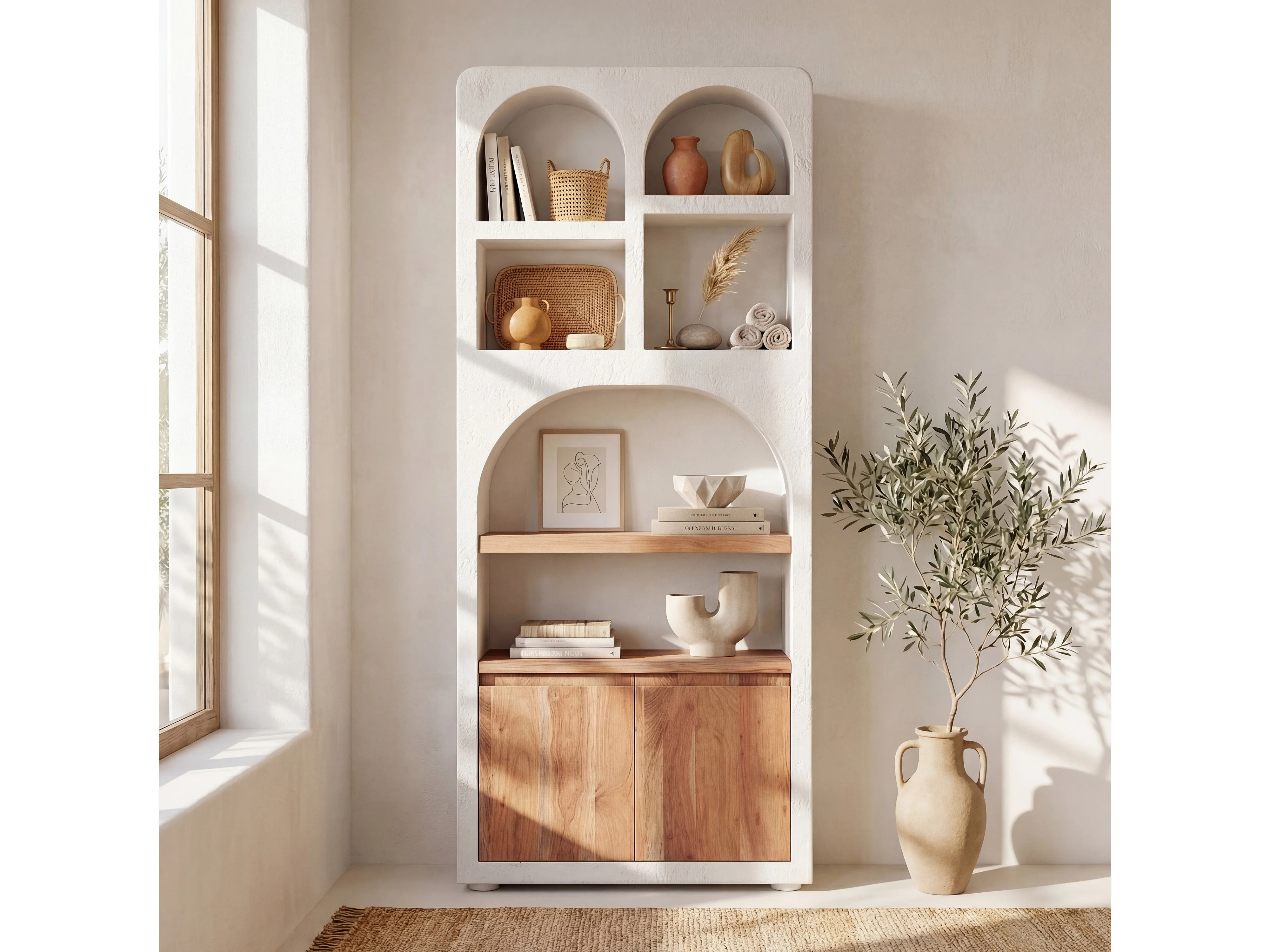Biblioteca de yeso blanco roto y madera de acacia - Fira