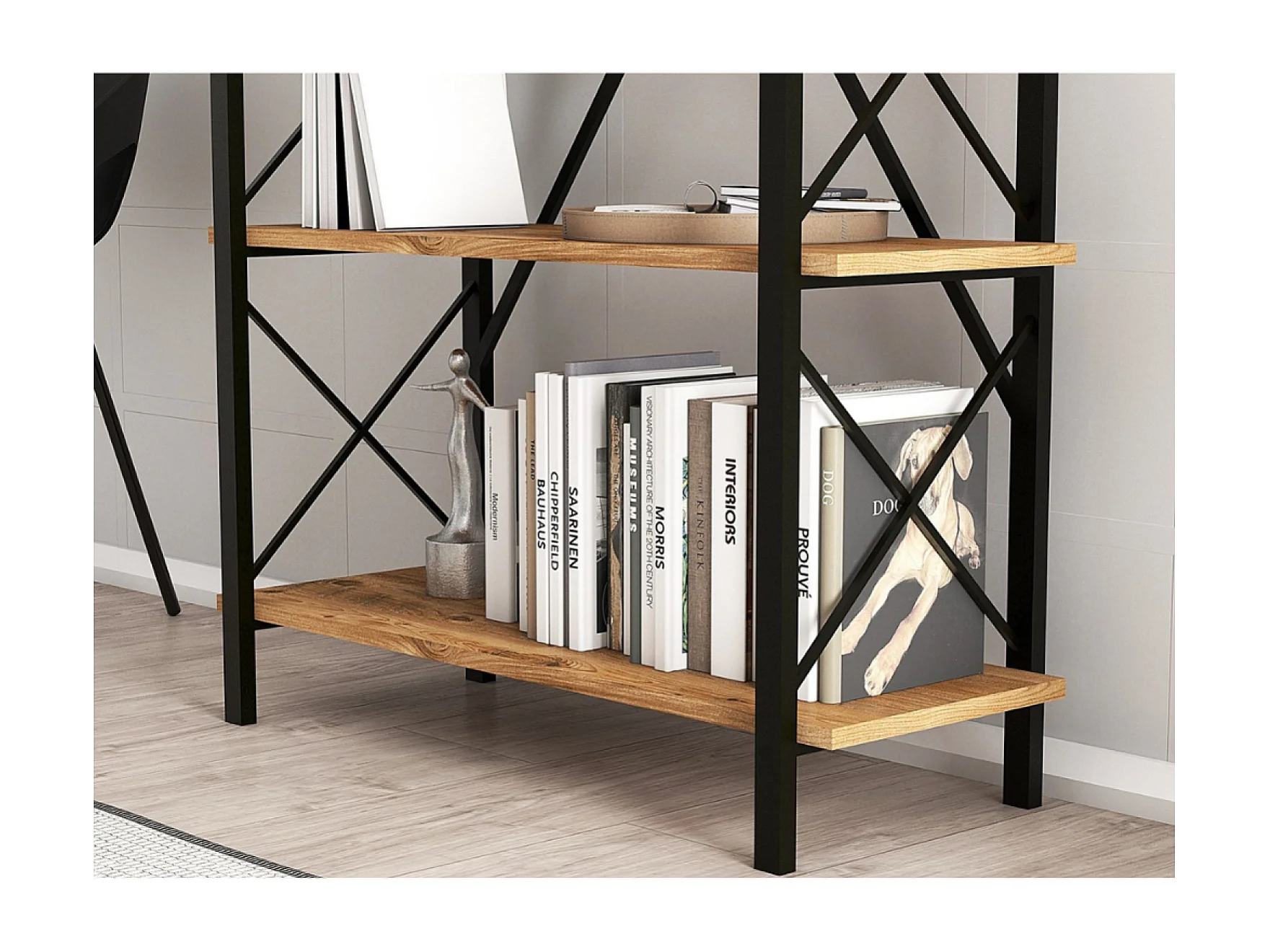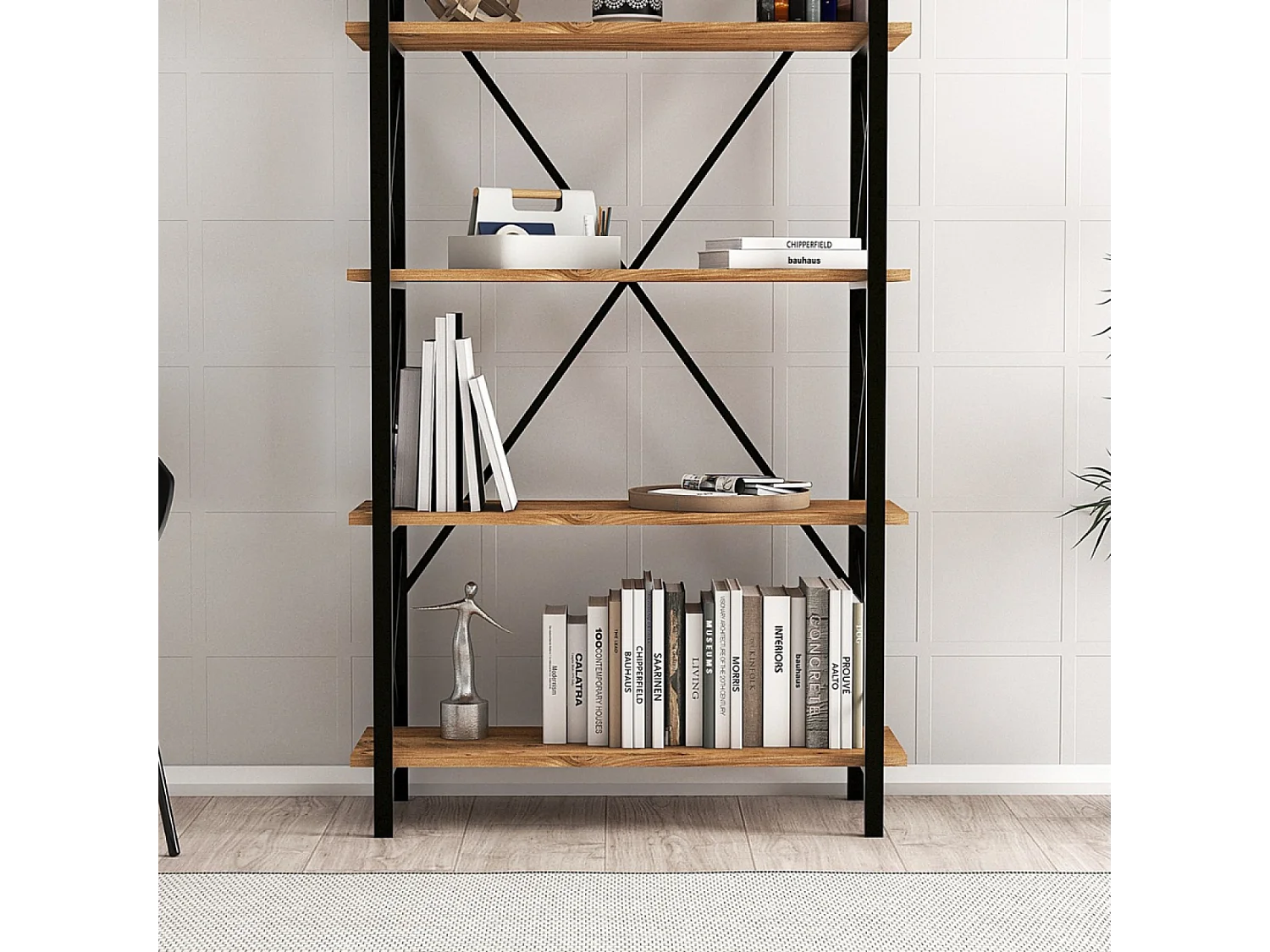 Biblioteca Diseño en Metal FANI - 5 Estantes Madera y Negro