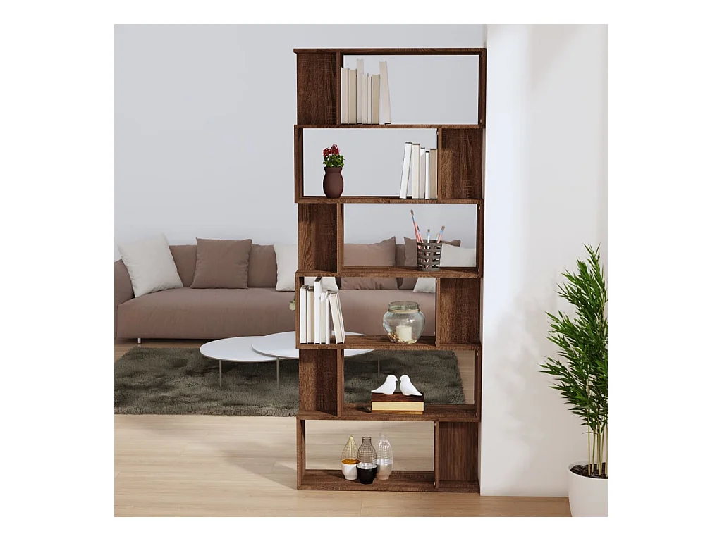 Biblioteca Estantería/Biombo madera contrachapada marrón roble 80x24x192cm ES24454