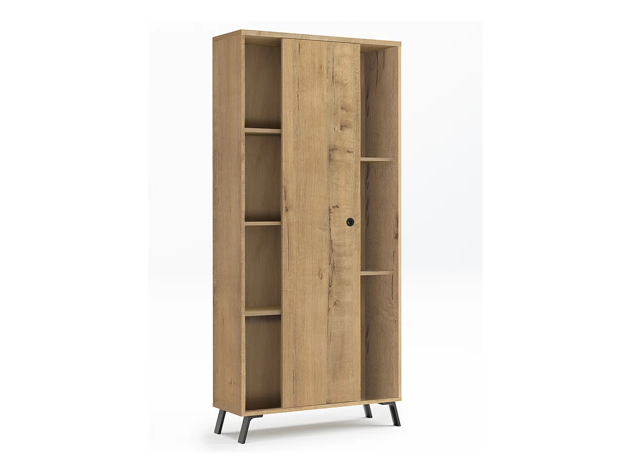 Biblioteca Estantería de 1 puerta corredera color Roble dorado - Altura 180 x Longitud 80 x Profundidad 33 cm
