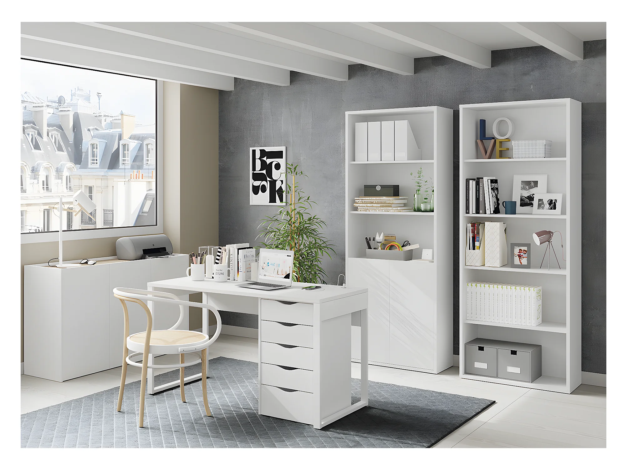 Biblioteca / Estantería de almacenamiento, color Blanco - Altura 196.5 x Longitud 75.5 x Profundidad 33 cm