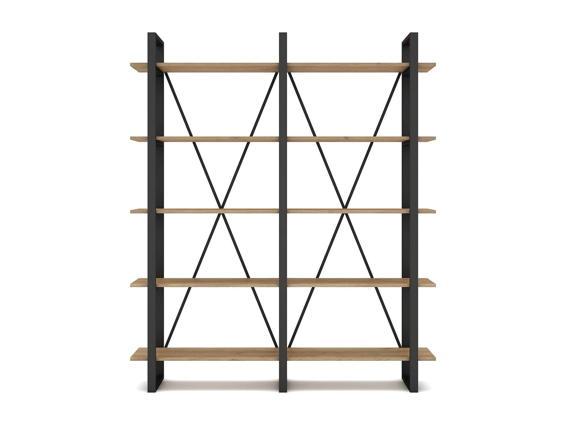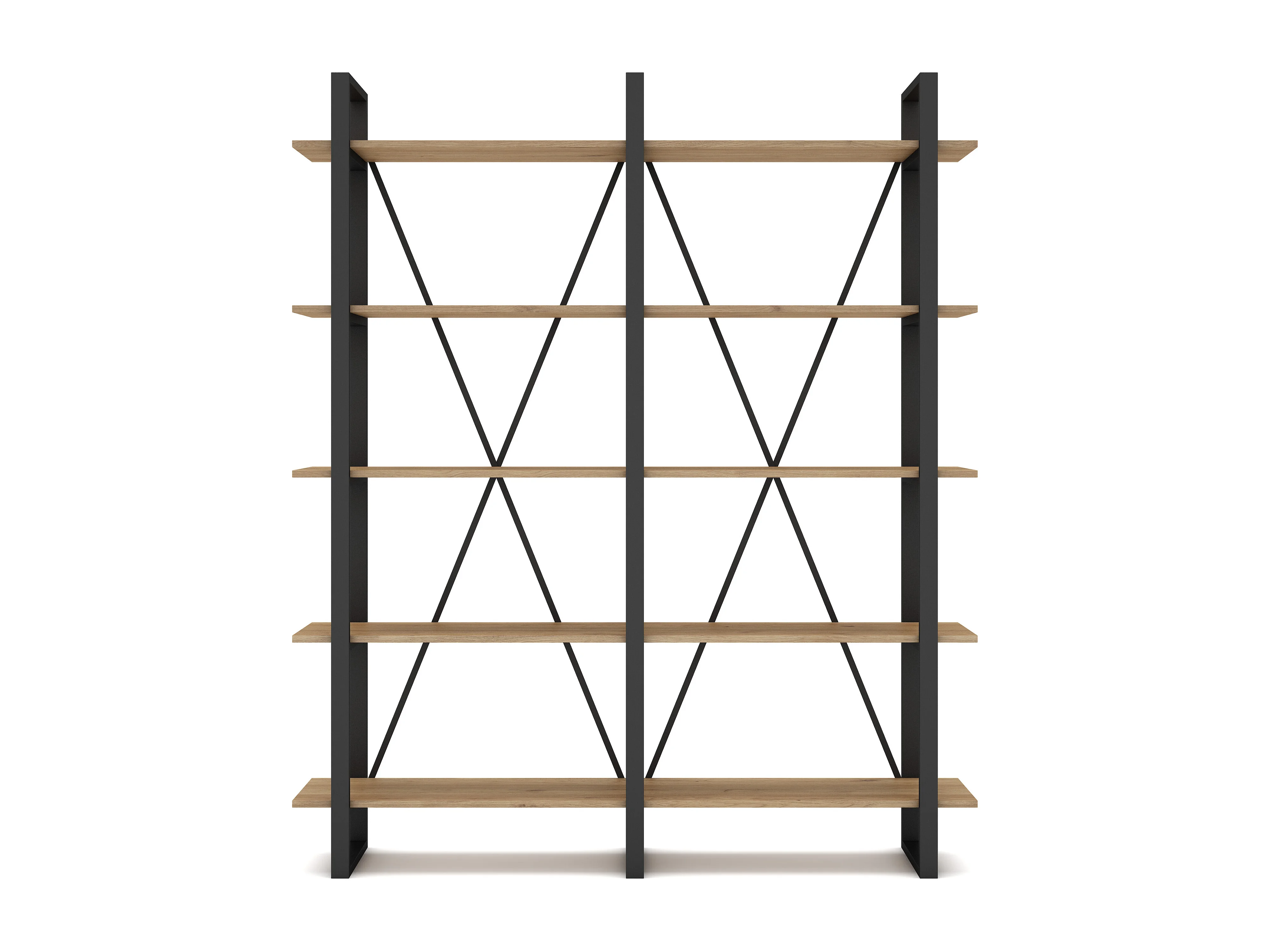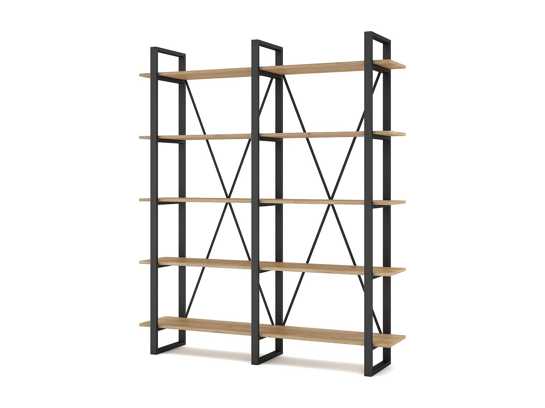 Bibliothèque 4 niveaux en métal noir et effet chêne 217.5 cm - Genna