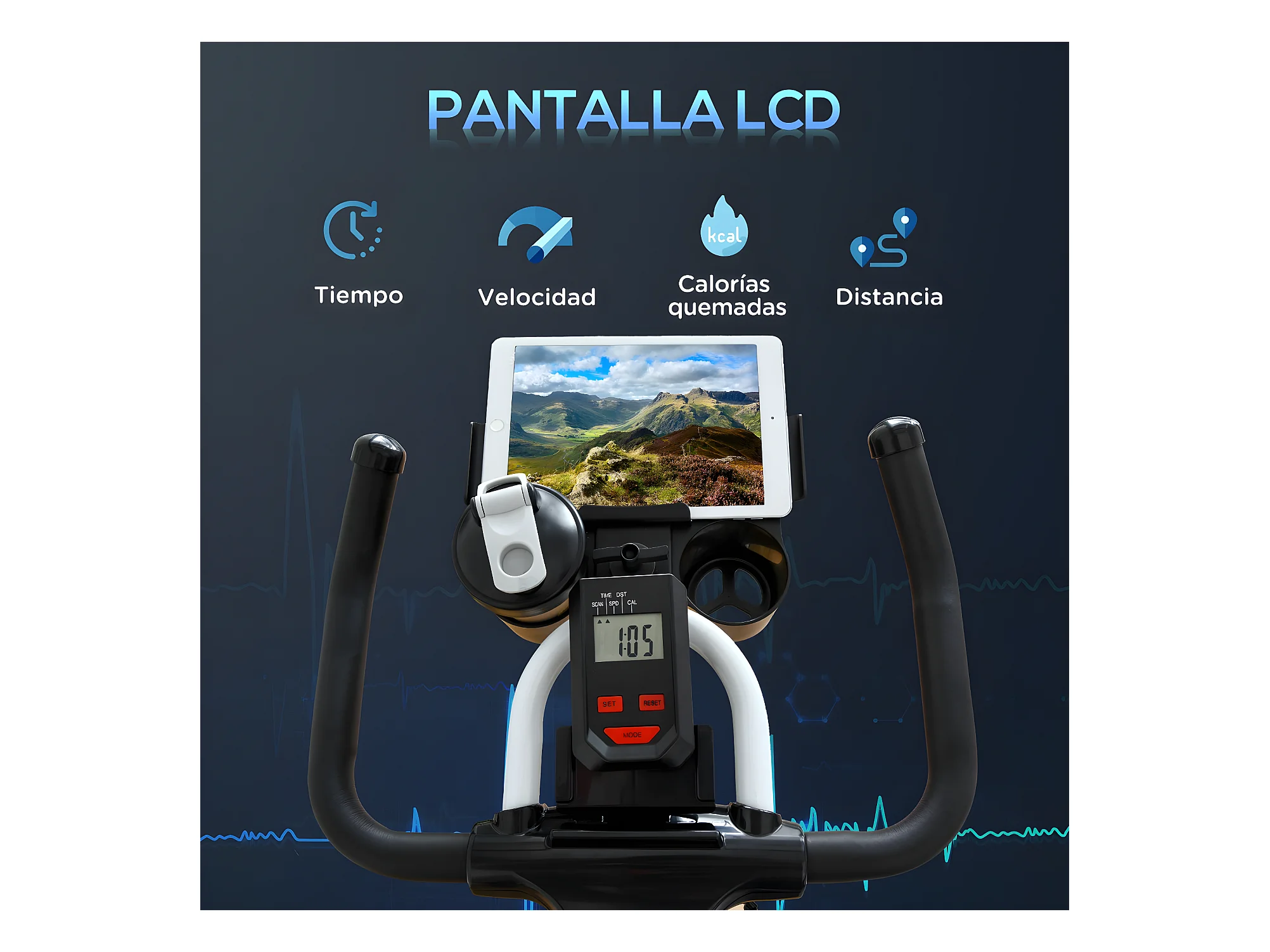 Bicicleta estática con pantalla LCD, asiento regulable y resistencia regulable, acero, color negro (85x46x114cm)
