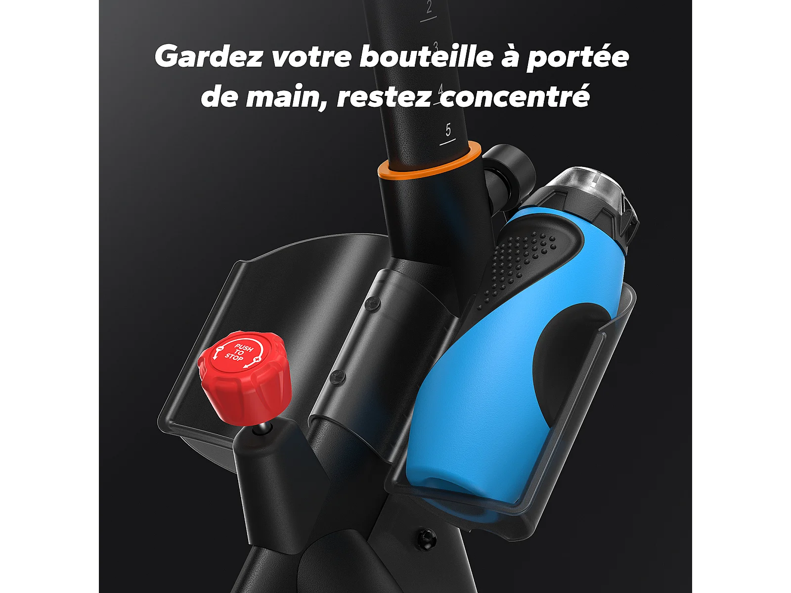 Bicicleta estática magnética, volante de 18 kg, 16 niveles, manillar/asiento regulables, Bluetooth, doble portabotellas, soporte para mancuernas