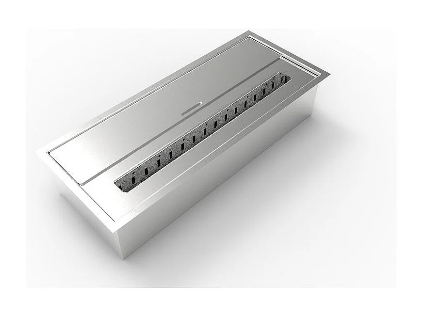 Chimenea de bioetanol con quemador de acero inoxidable de 3,5 lts. Dimensiones: 45,7 x 18,7 x 9,5 cm.