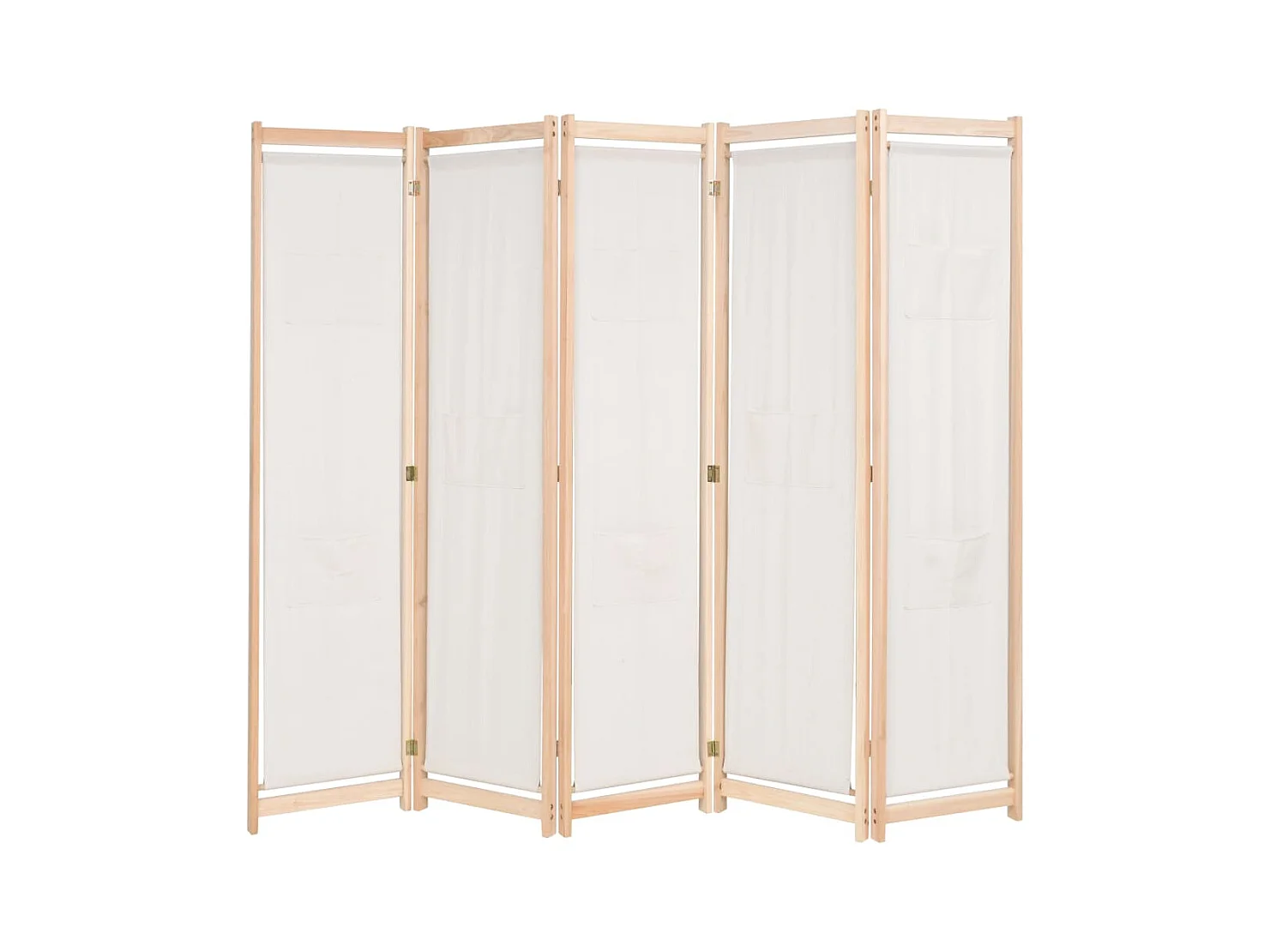 Biombo de 5 paneles Crema 200 x 170 x 4 cm Tela