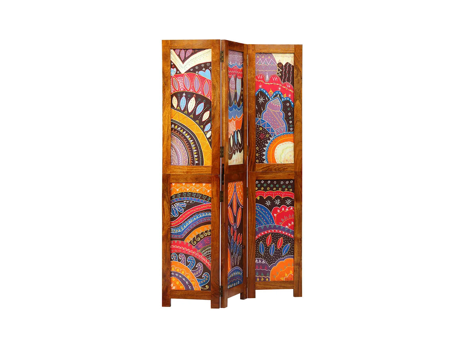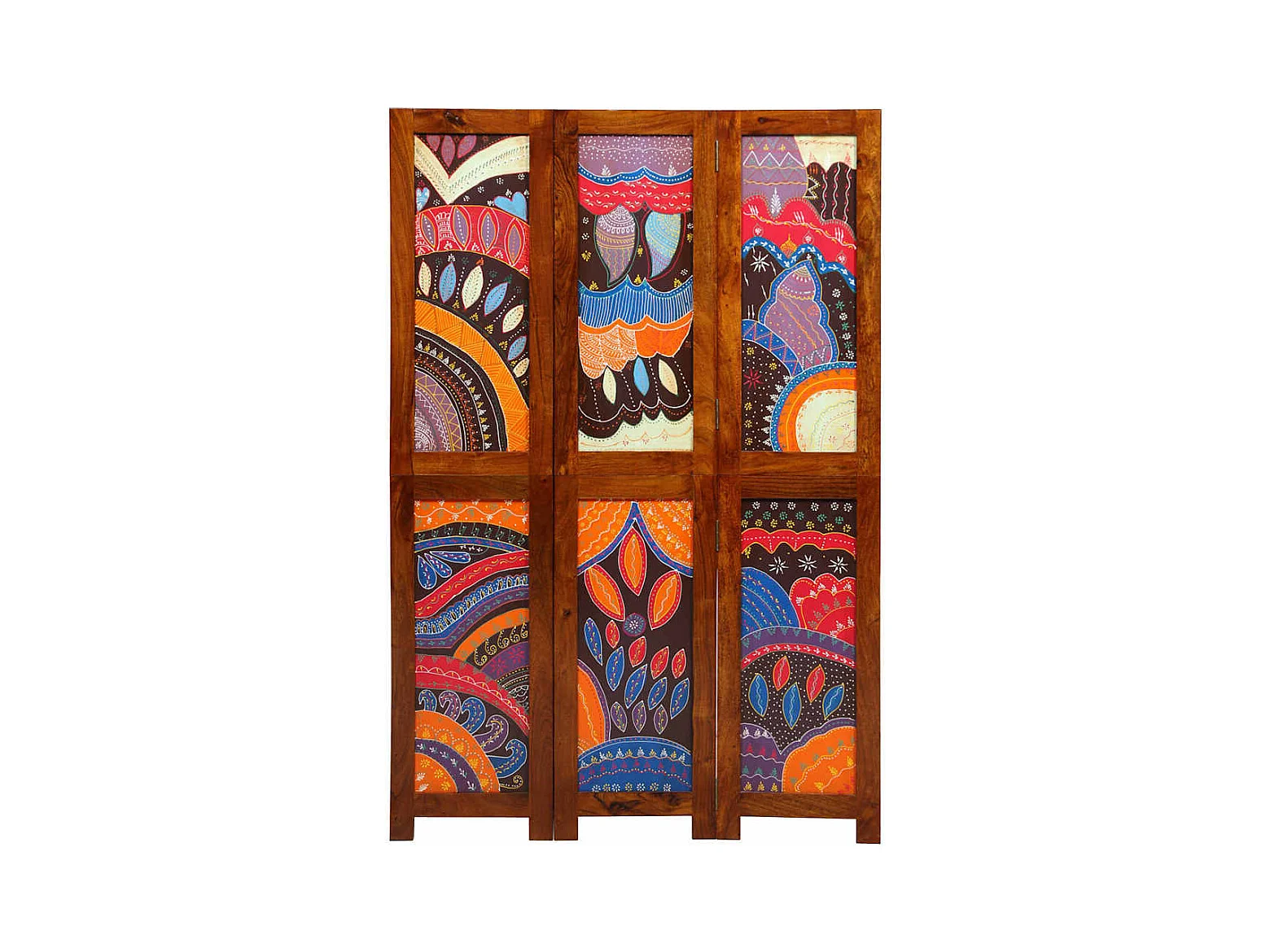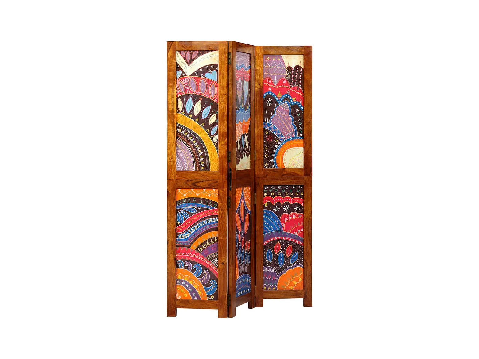 Tabique divisorio de 3 paneles en madera maciza de paulownia marrón