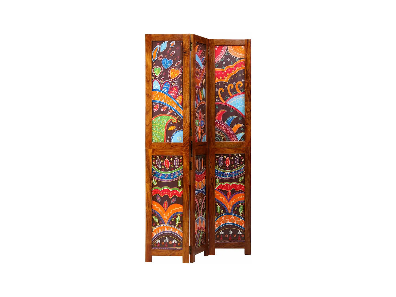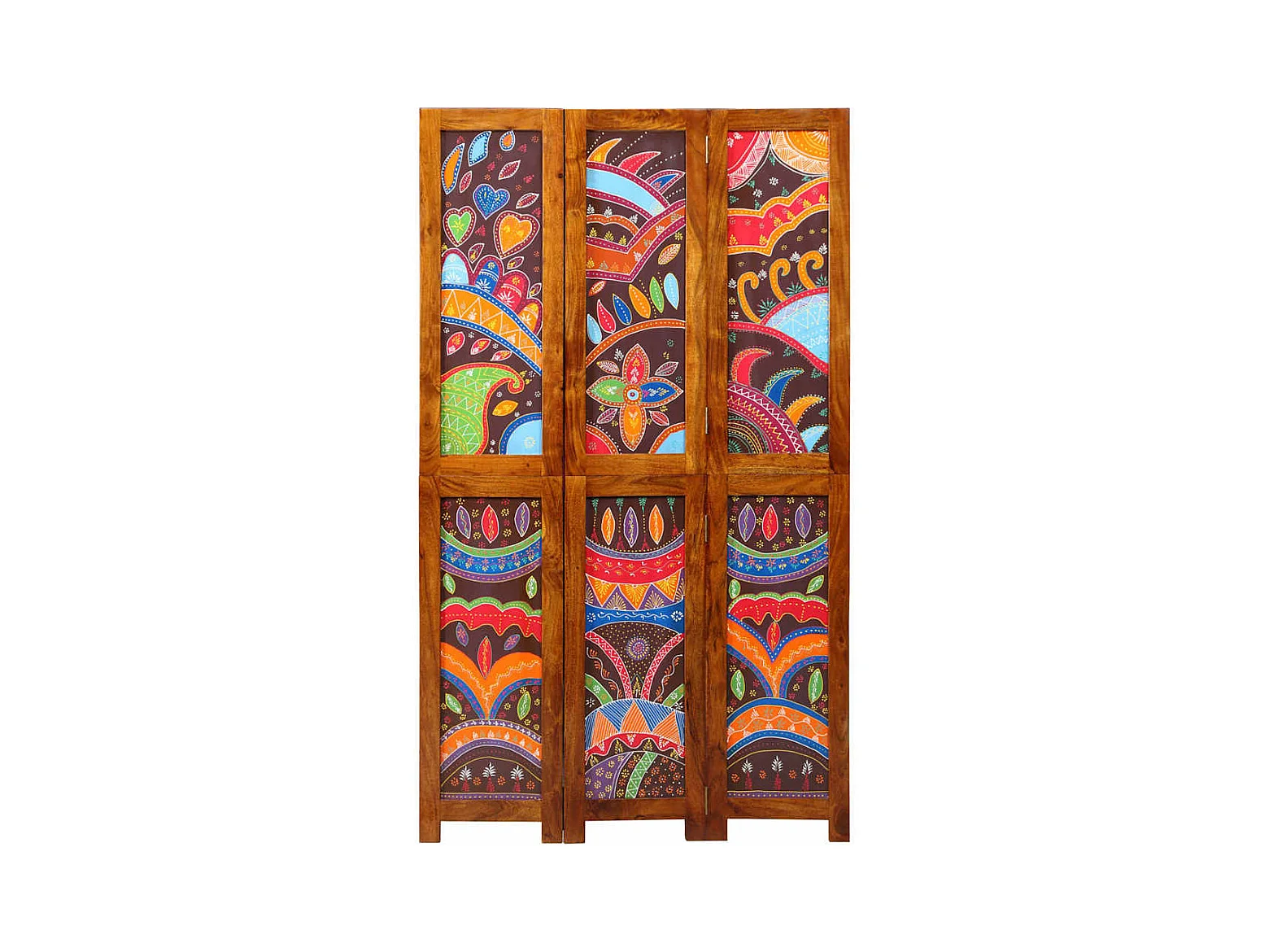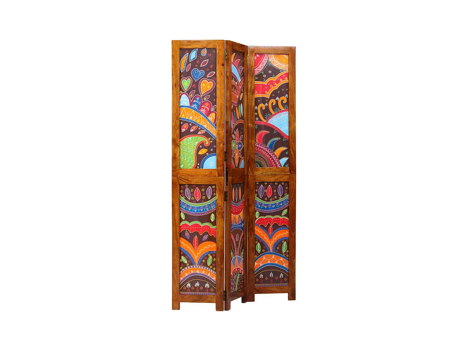 Tabique divisorio de 3 paneles en madera maciza de paulownia marrón