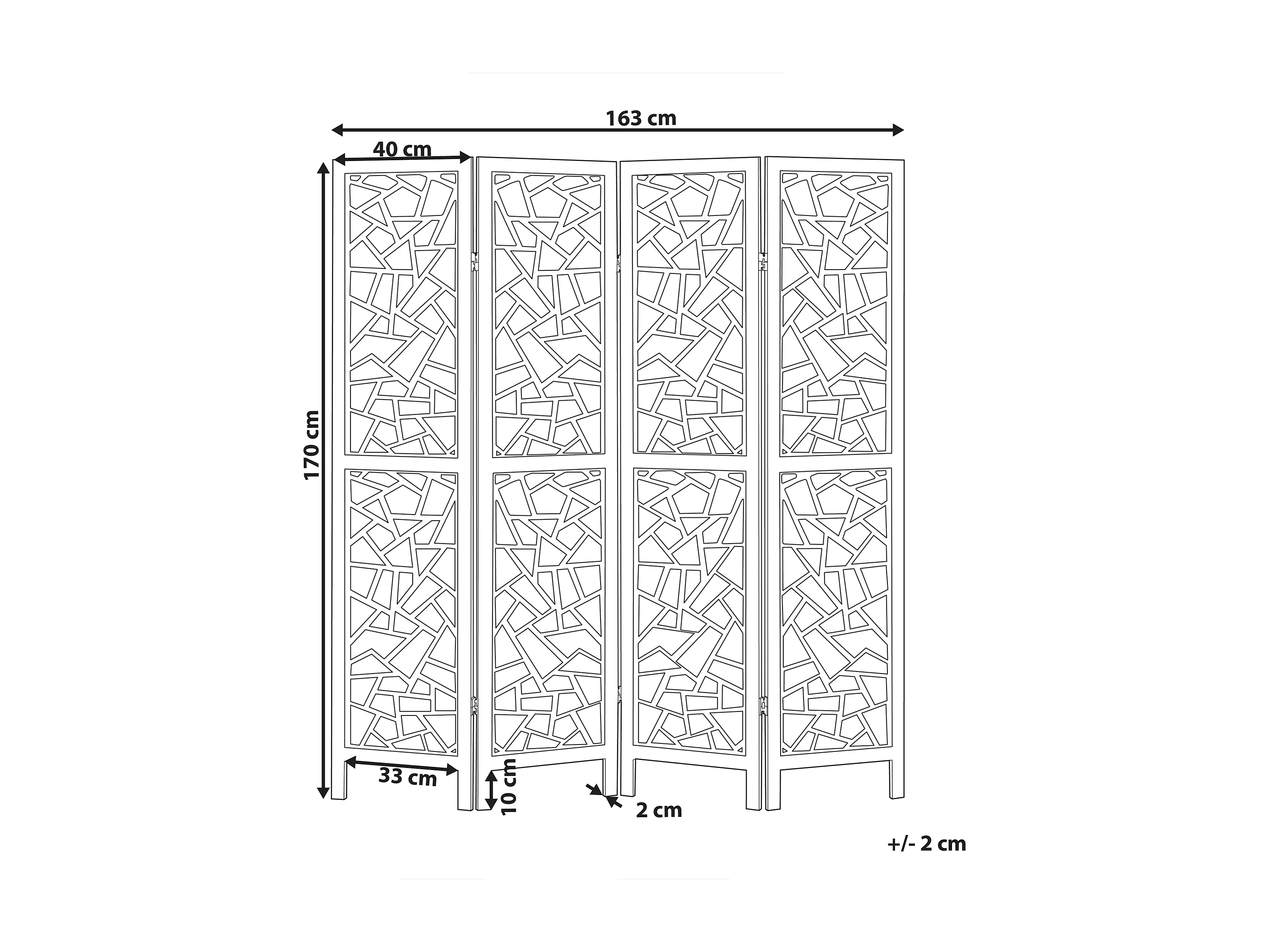 Separador de ambientes de 4 paneles PIANLARGO Negro 163 cm 170 cm