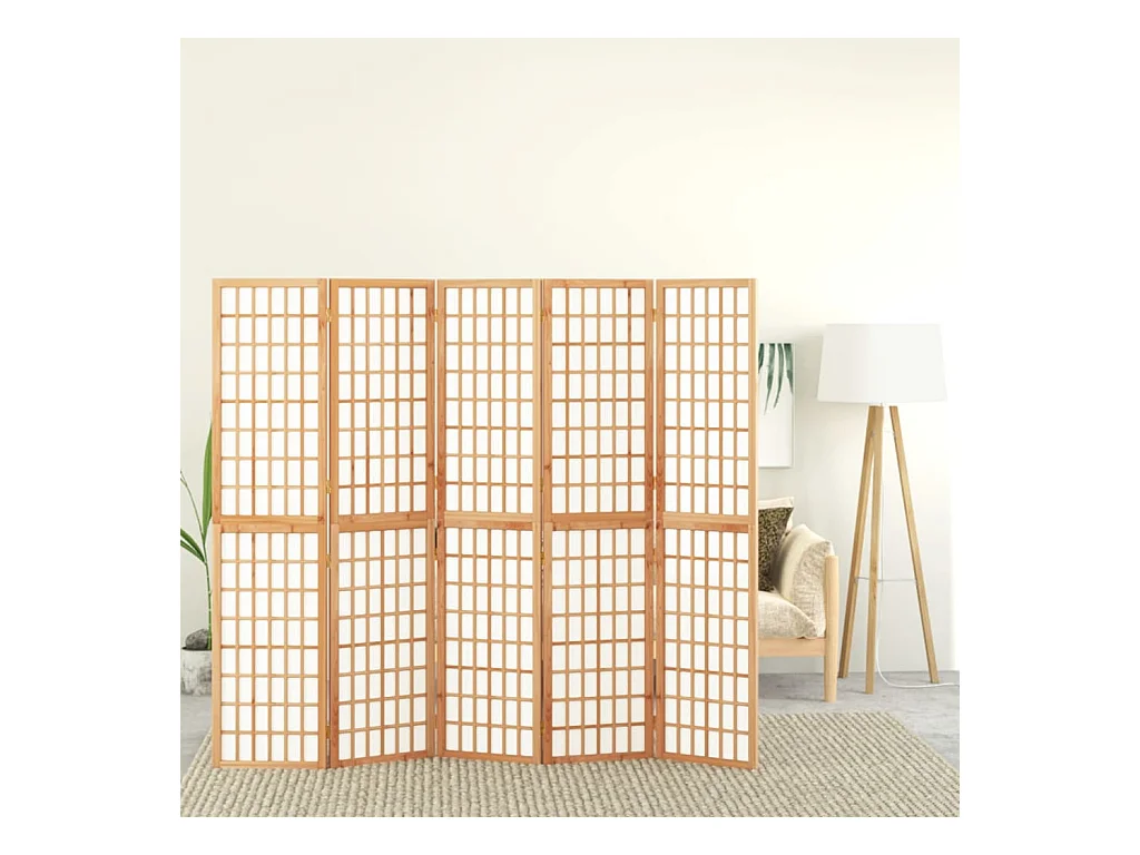 Biombo separador de 5 paneles madera maciza paulownia marrón ES279208