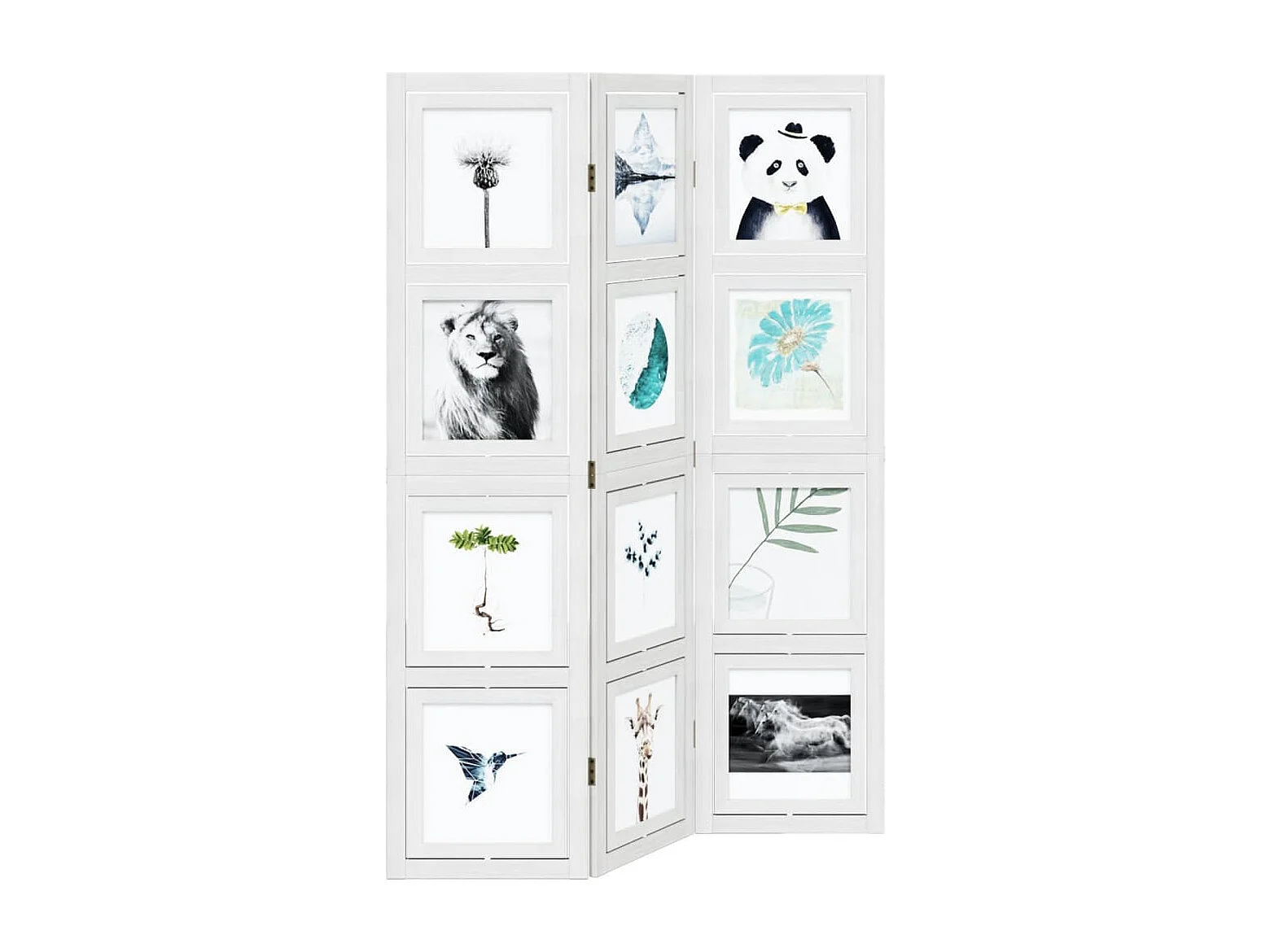 Biombo separador de 3 paneles madera maciza Paulownia blanco ES969924