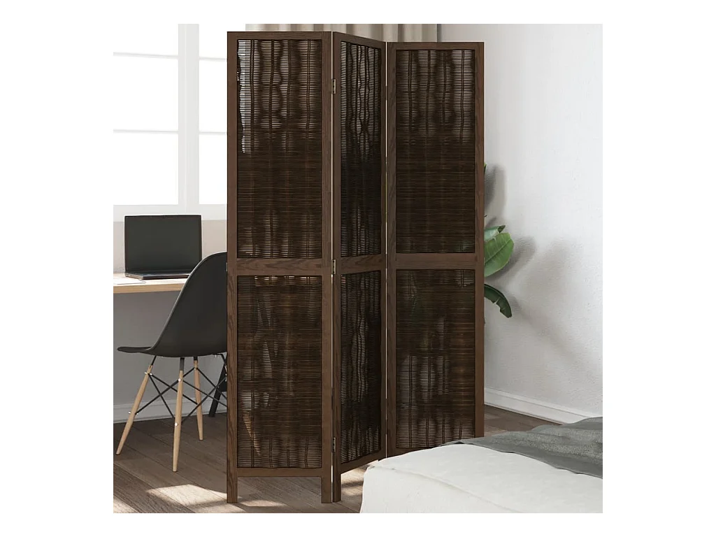 Biombo separador de 3 paneles madera paulownia marrón oscuro ES527849