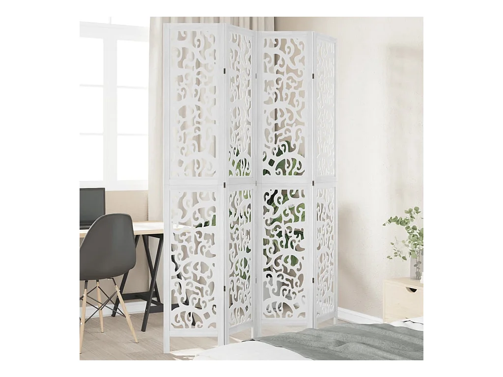Biombo separador de 4 paneles madera maciza Paulownia blanco ES976357