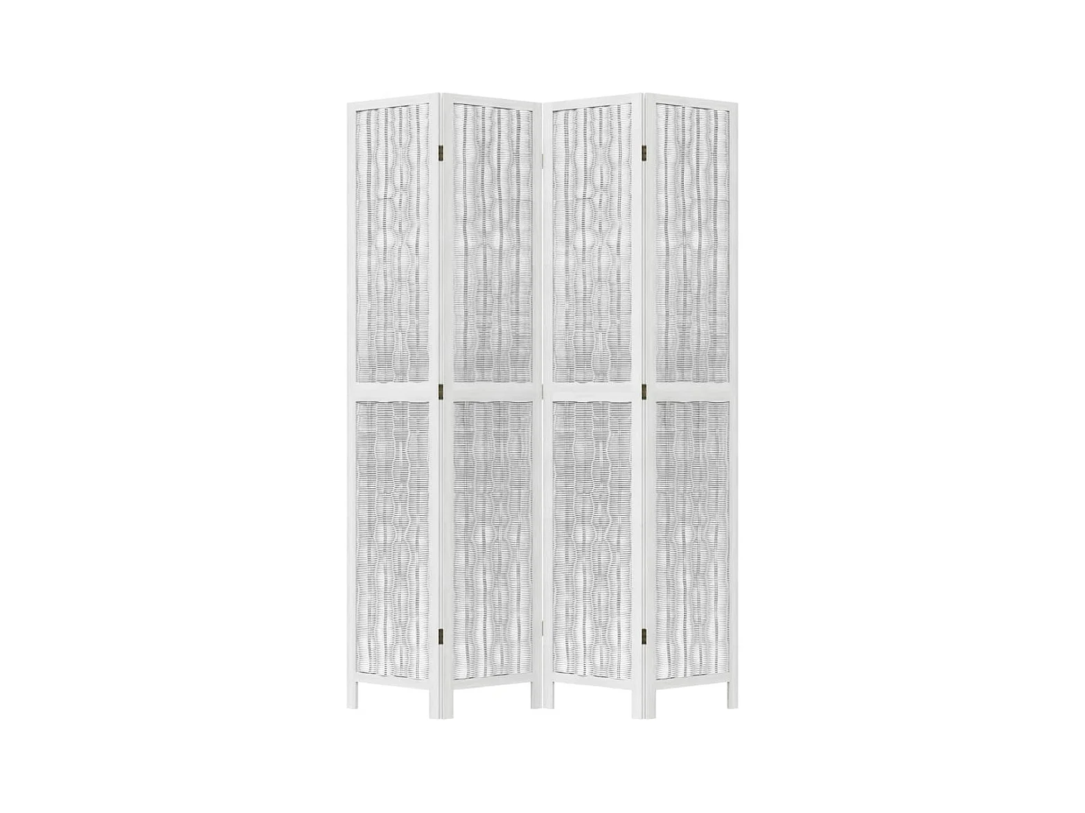 Biombo separador de 4 paneles madera maciza Paulownia blanco ES902621
