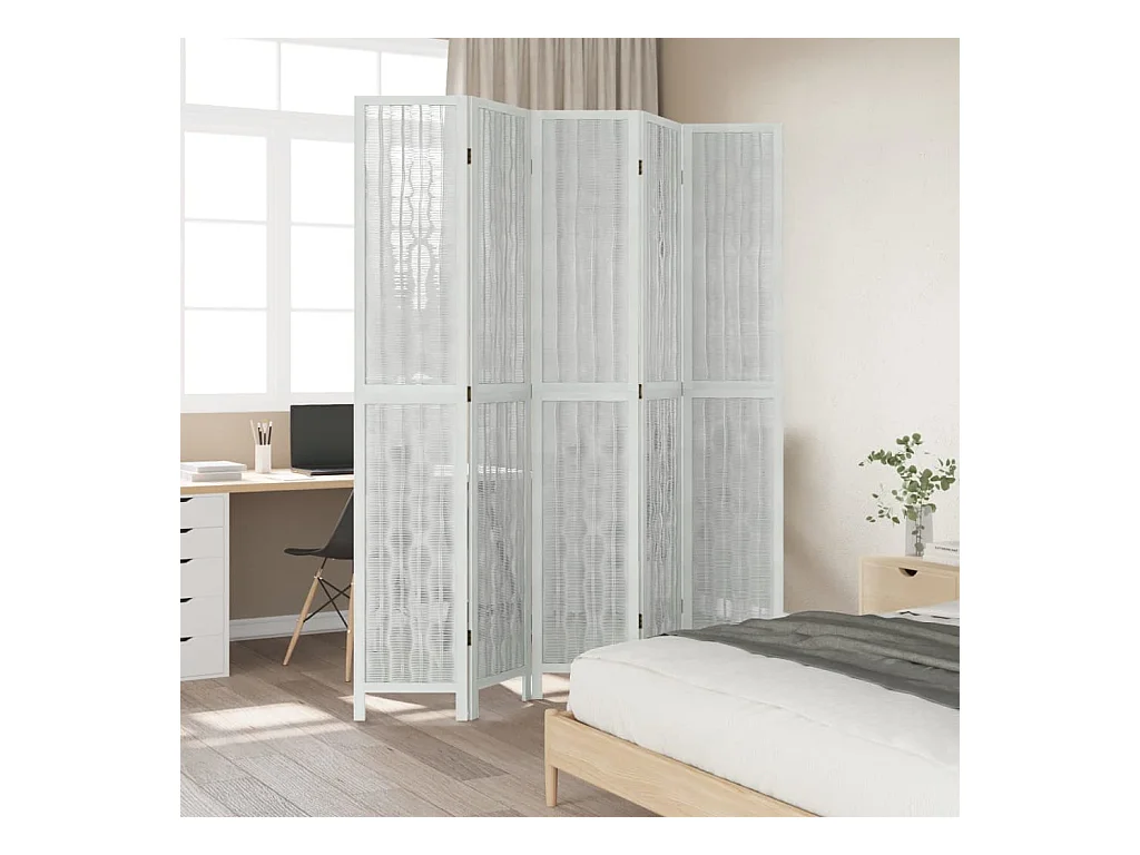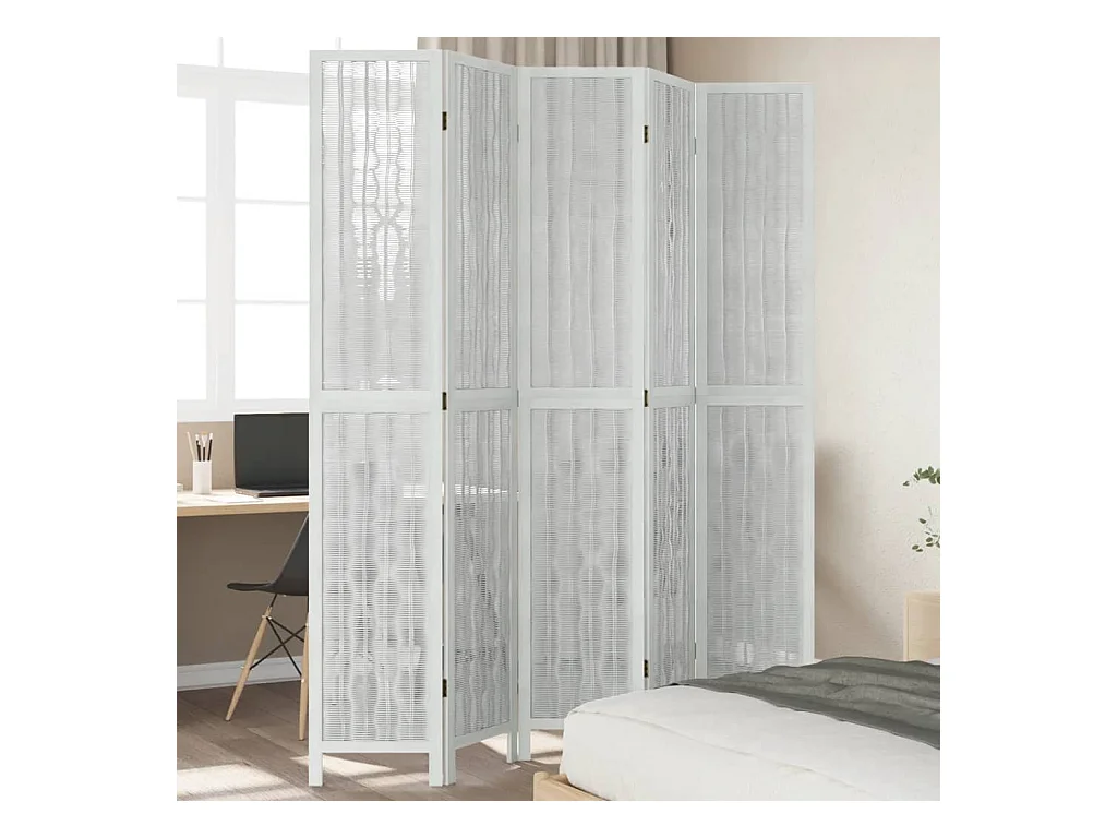 Biombo separador de 5 paneles madera maciza Paulownia blanco ES866592
