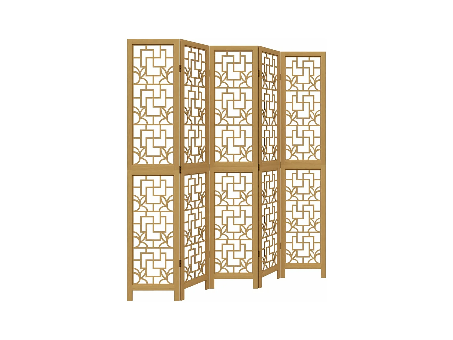 Biombo separador de 5 paneles madera maciza paulownia marrón ES507010