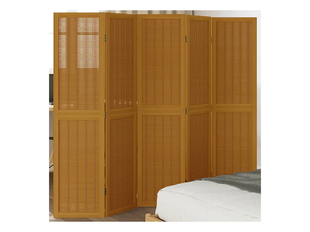 Biombo separador de 5 paneles madera maciza paulownia marrón ES827340