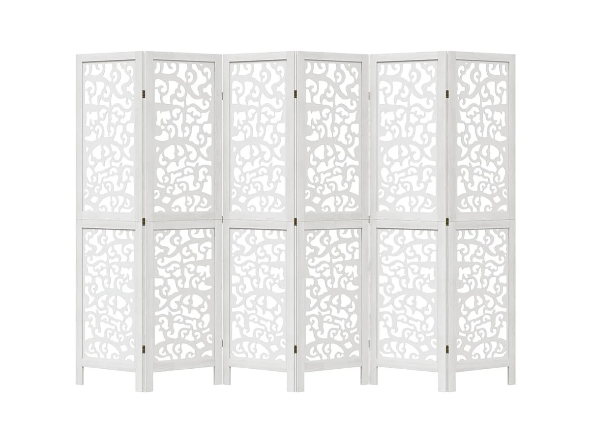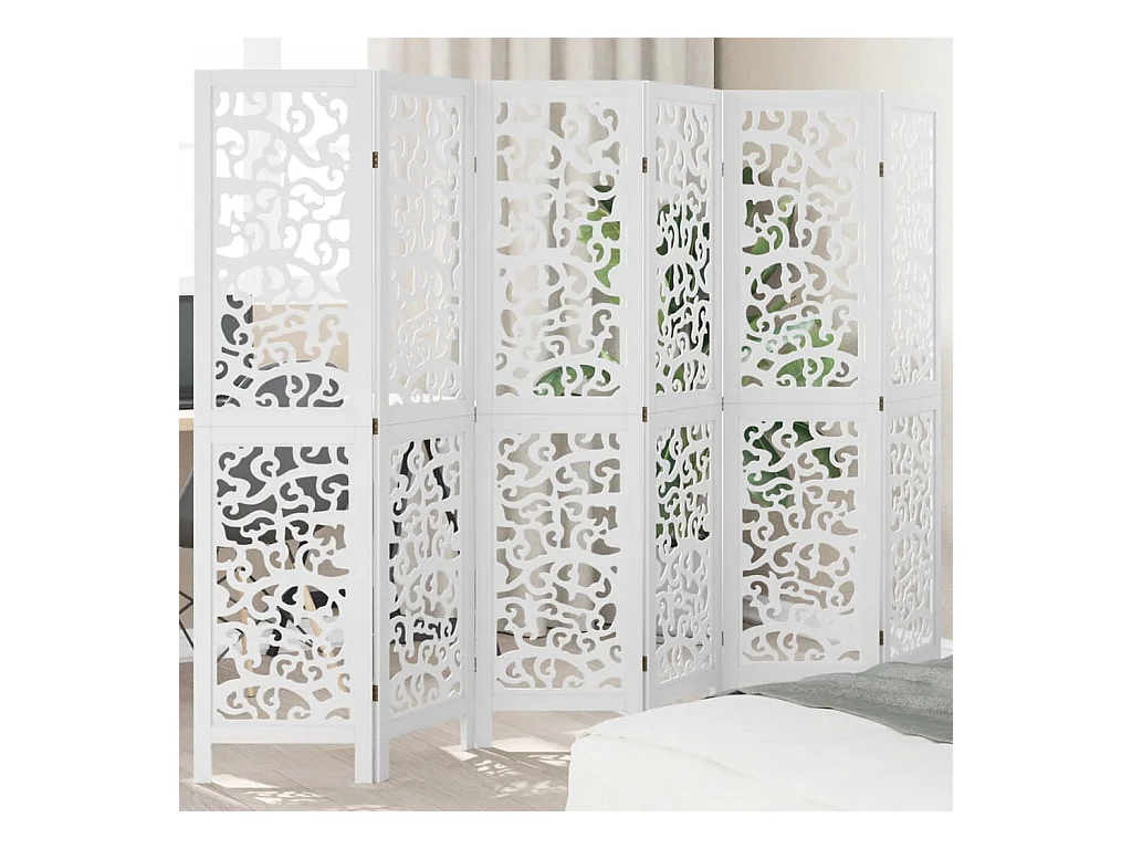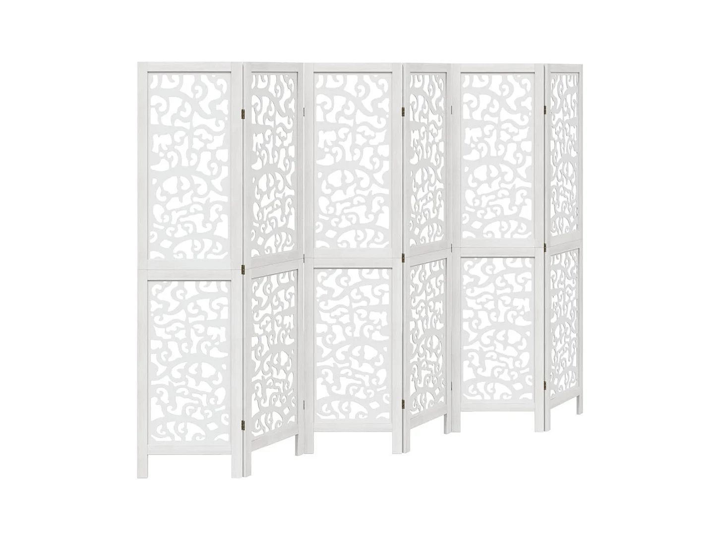 Biombo separador de 6 paneles madera maciza Paulownia blanco ES999168