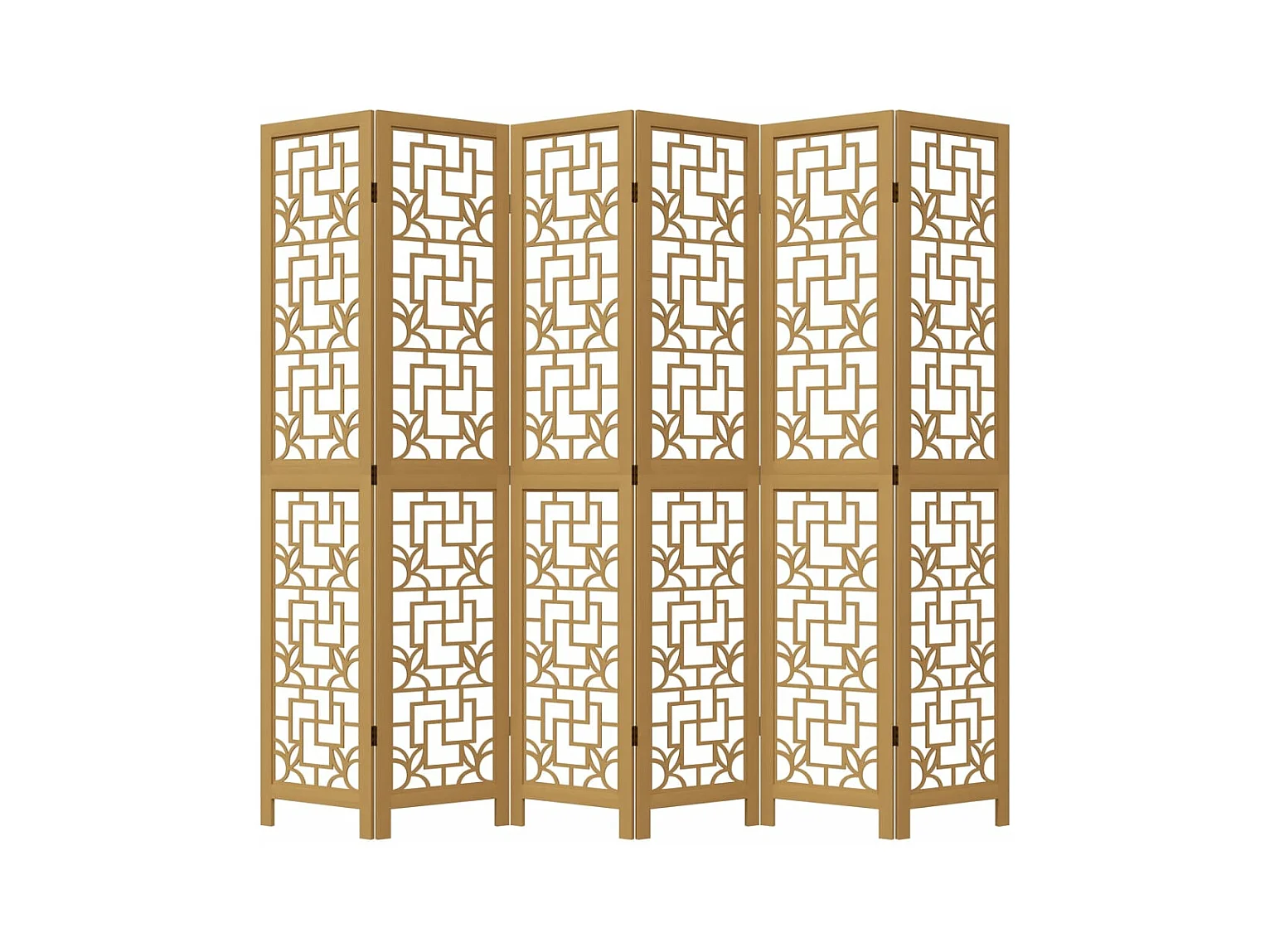 Biombo separador de 6 paneles madera maciza paulownia marrón ES938030