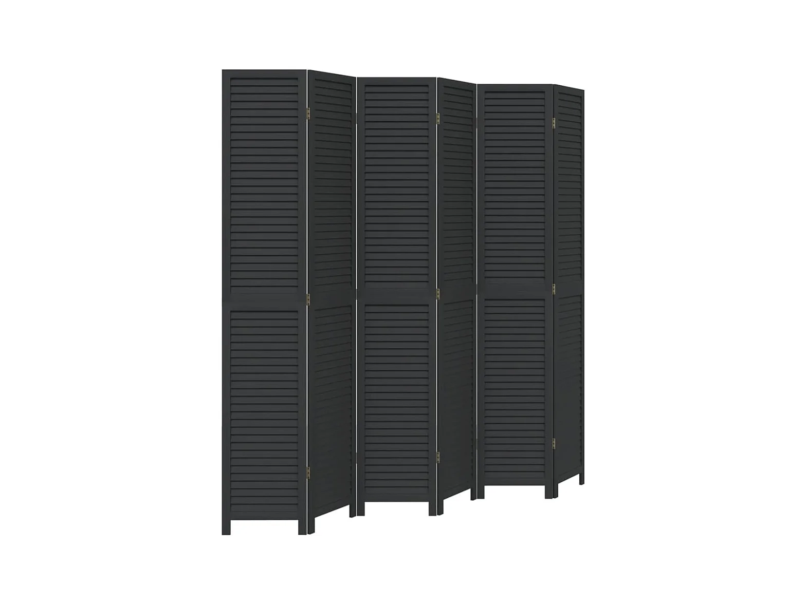 Biombo separador de 6 paneles madera maciza Paulownia negro ES892666