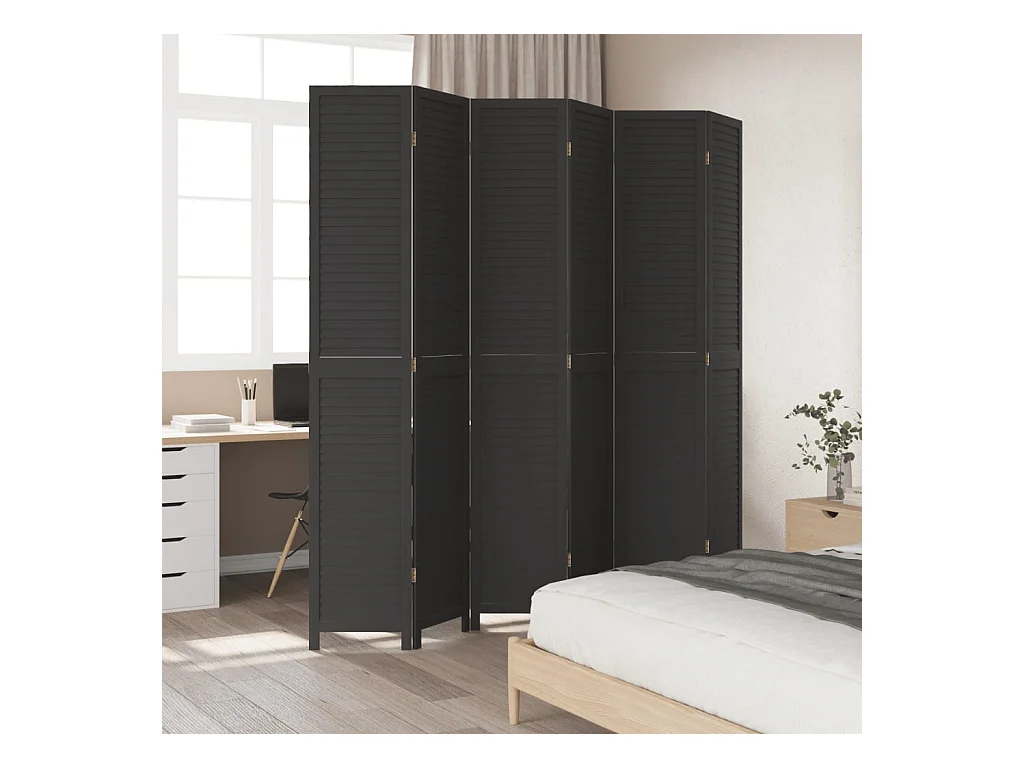 Biombo separador de 6 paneles madera maciza Paulownia negro ES632714