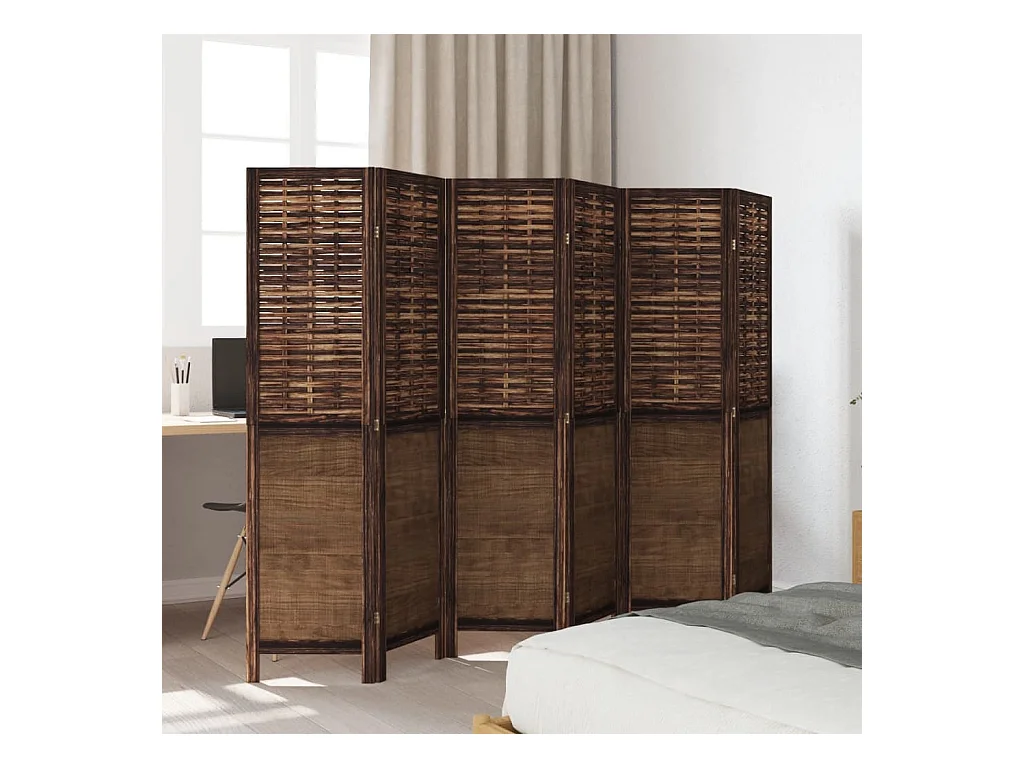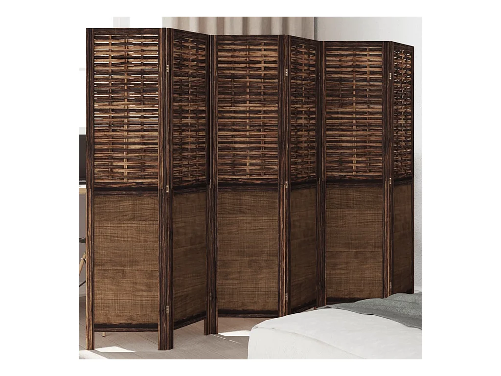Biombo separador de 6 paneles madera paulownia marrón oscuro ES984820