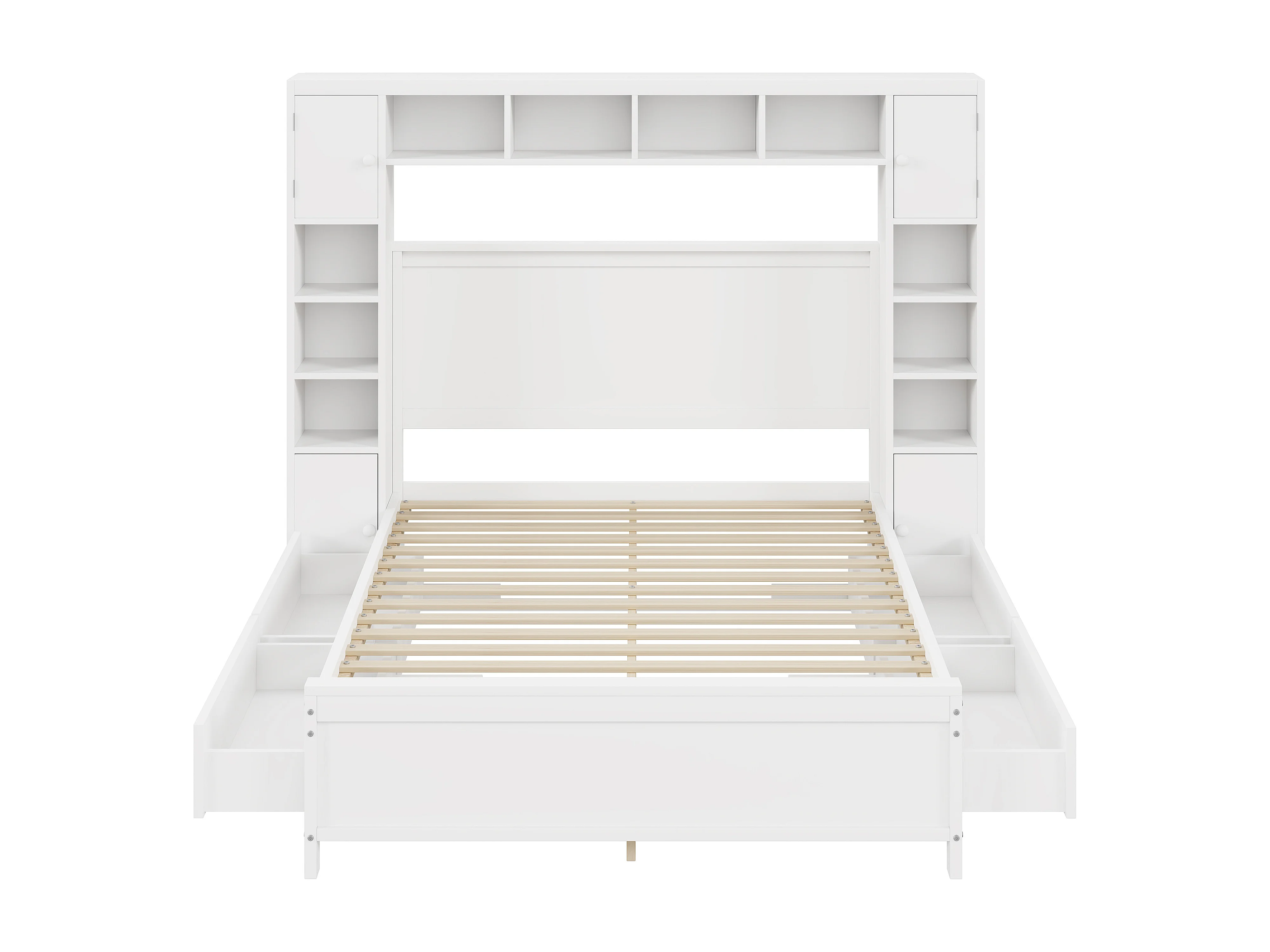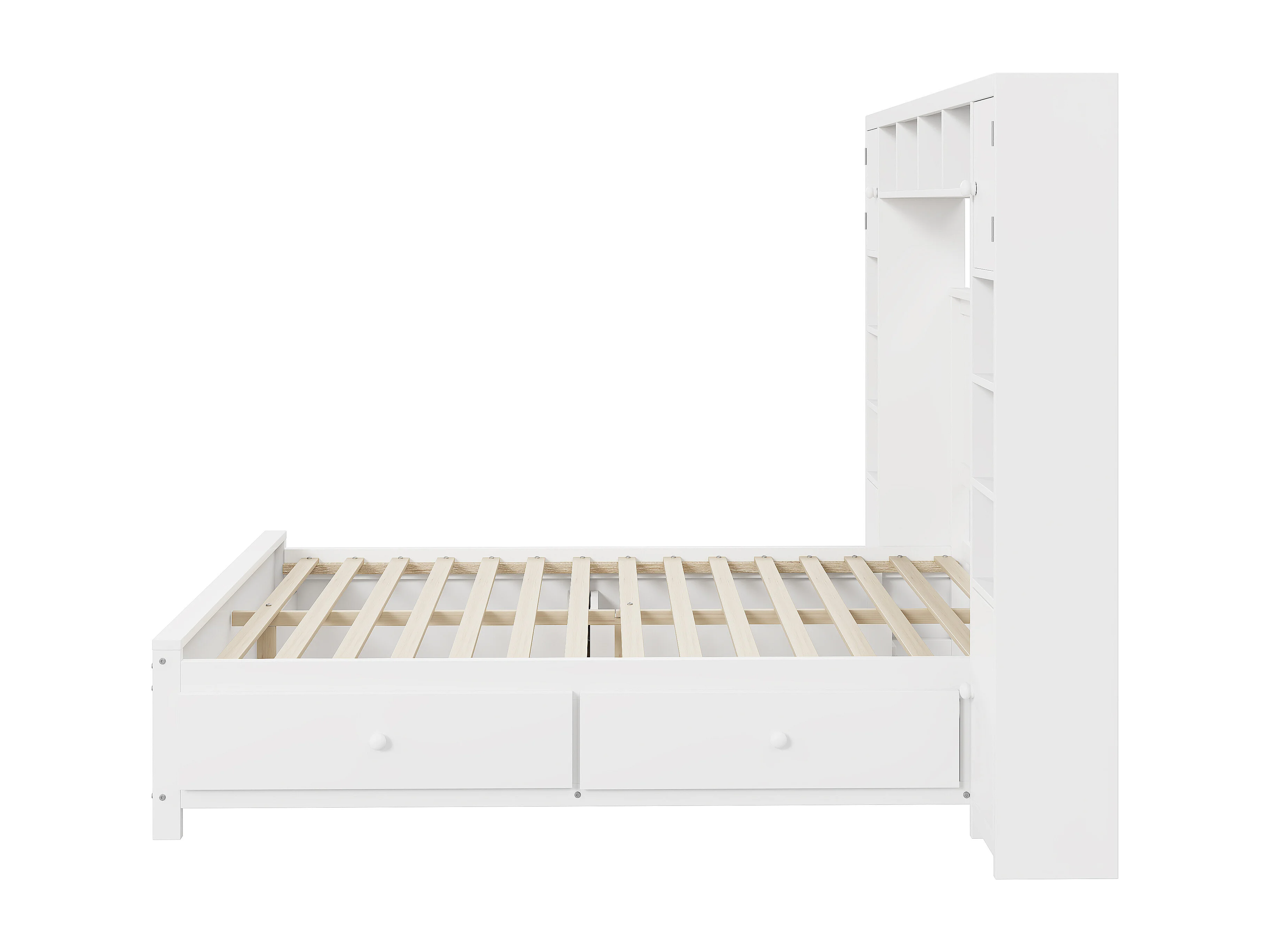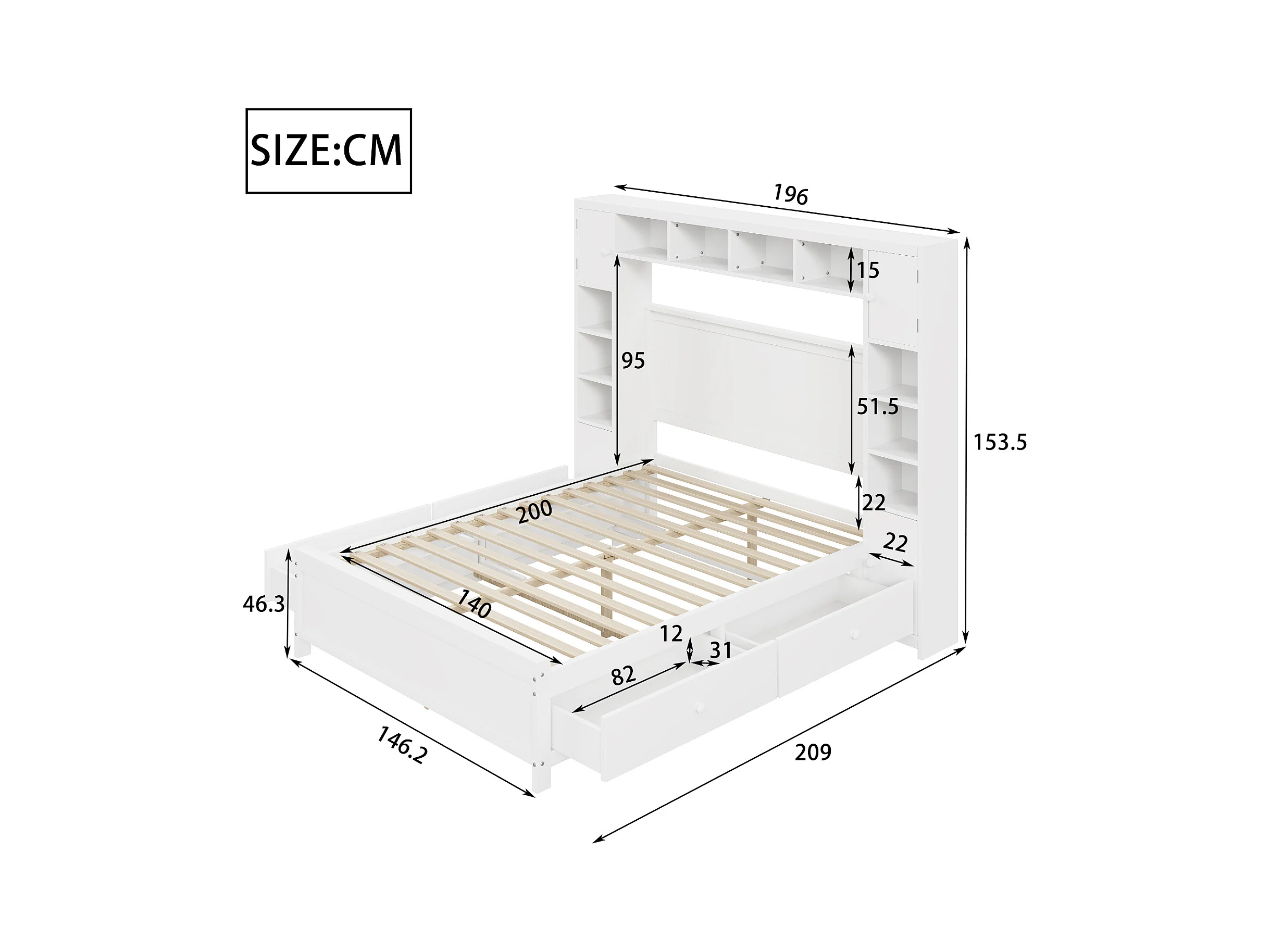 Marco de cama blanco 140*200 con 4 cajones y gran armario, cama doble de madera maciza, Placa base