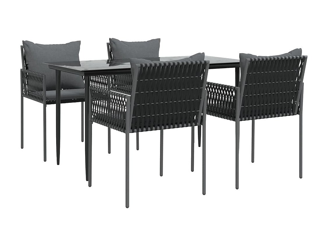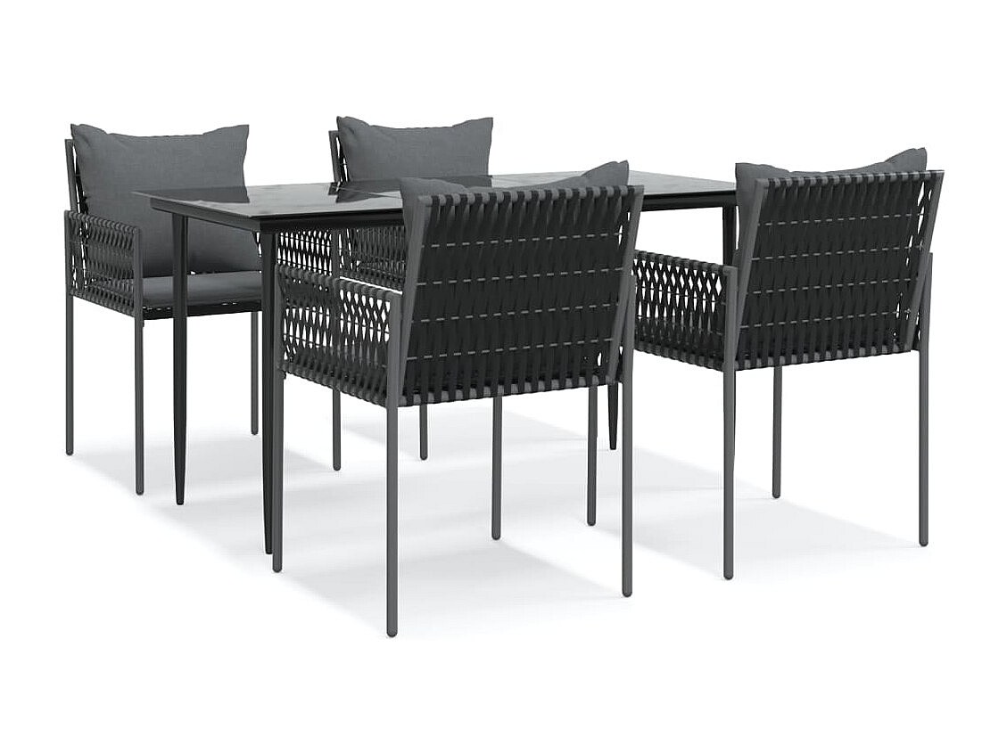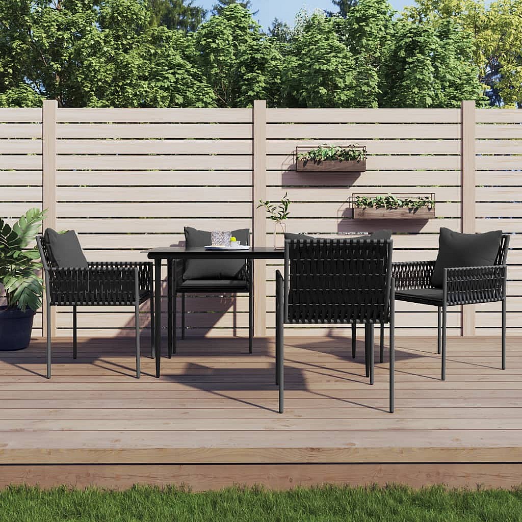 Vernon Juego de comedor de jardín 5 piezas con cojines negro