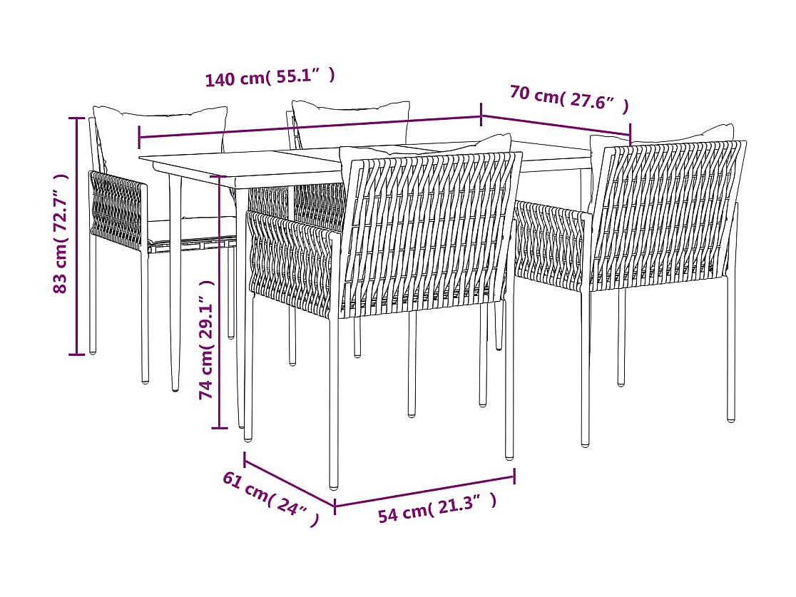 Blen Juego comedor jardín 5 piezas y cojines ratán sintético y acero