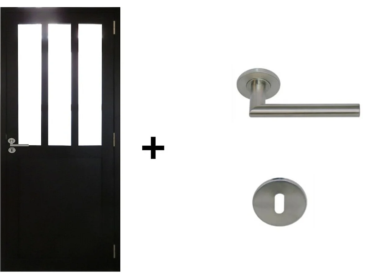 Bloque de puerta de taller negro H204 x L73 Nervios del panel de empuje izquierdo + manija