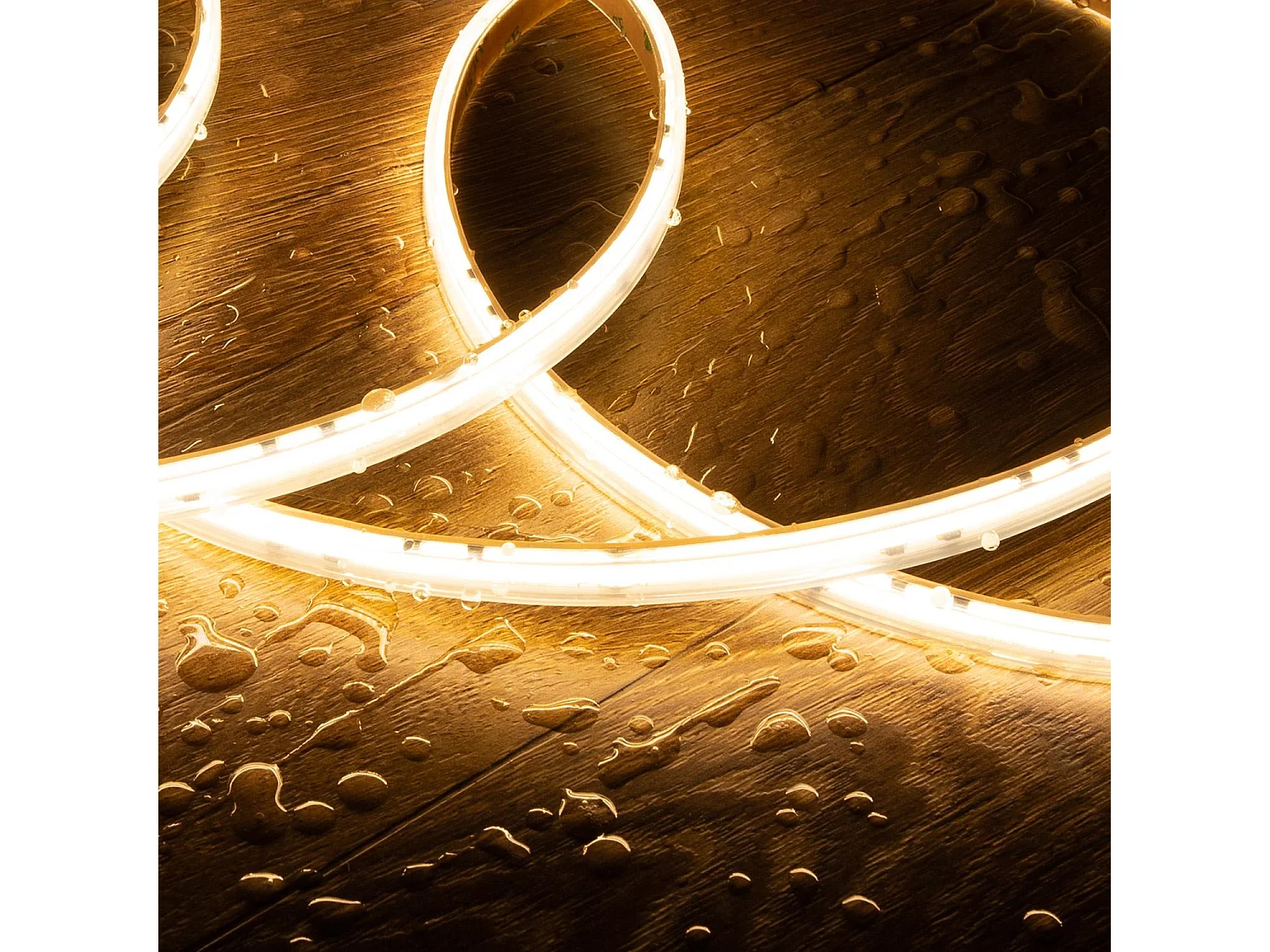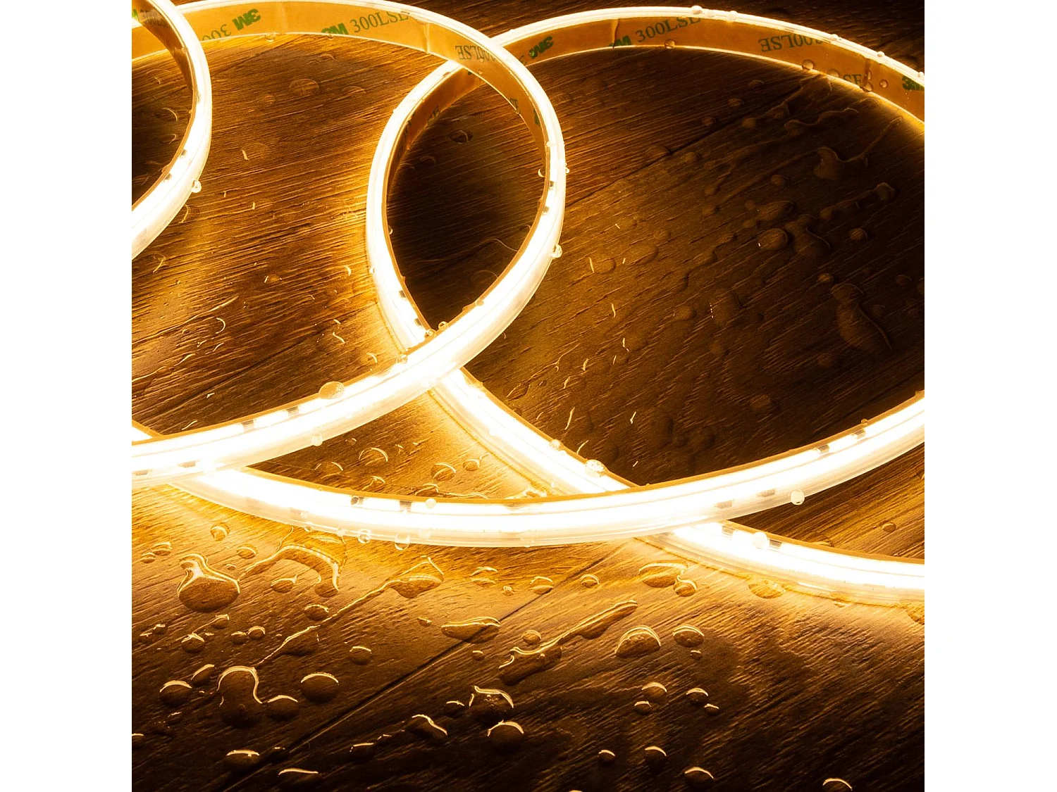 Tira LED Regulable 220V COB Autorrectificada 320 LED/m BOBINA 50m 8W/m 720 lm/m Ancho 12mm Corte 50cm IP65 CRI90 2200K Súper Cálido
