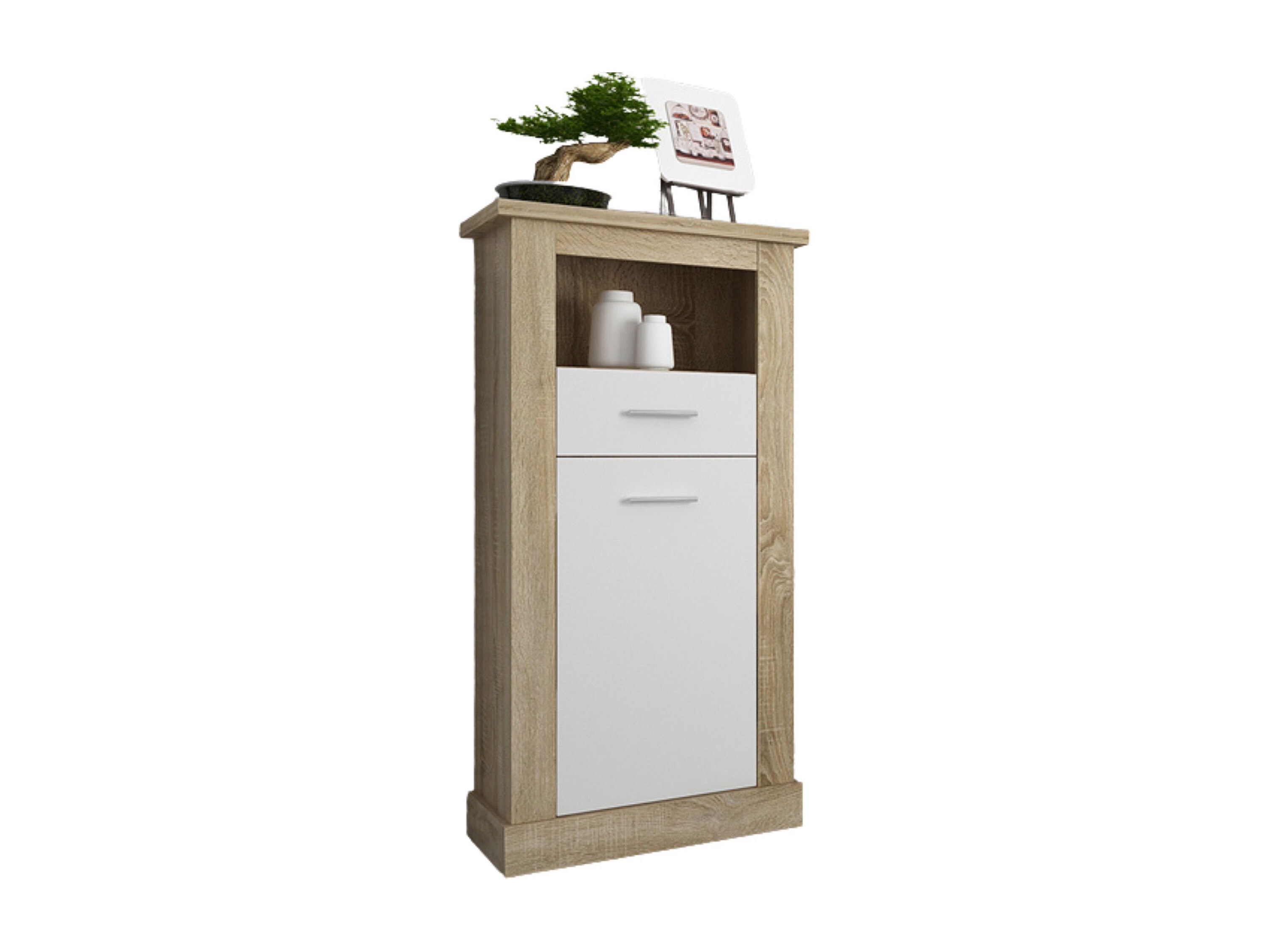 Bodeguero para Salón o Comedor, Práctico y Funcional, Color Cambria-Blanco, Fácil de Montar, Madera, 135cm (Alto) x 66cm (Ancho) x 36,6cm (Fondo)